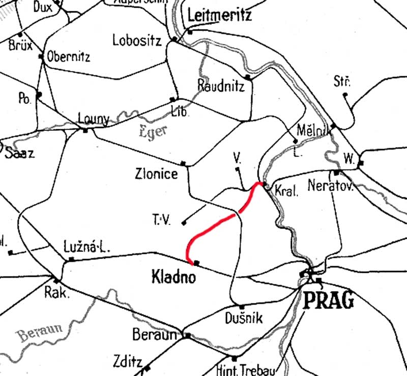 Kladno / Kladno 0,0 - Kladno-Eichen / Kladno-Dubí 7,460 - Kralup (Moldau) / Kralupy nad Vltavou 25,076