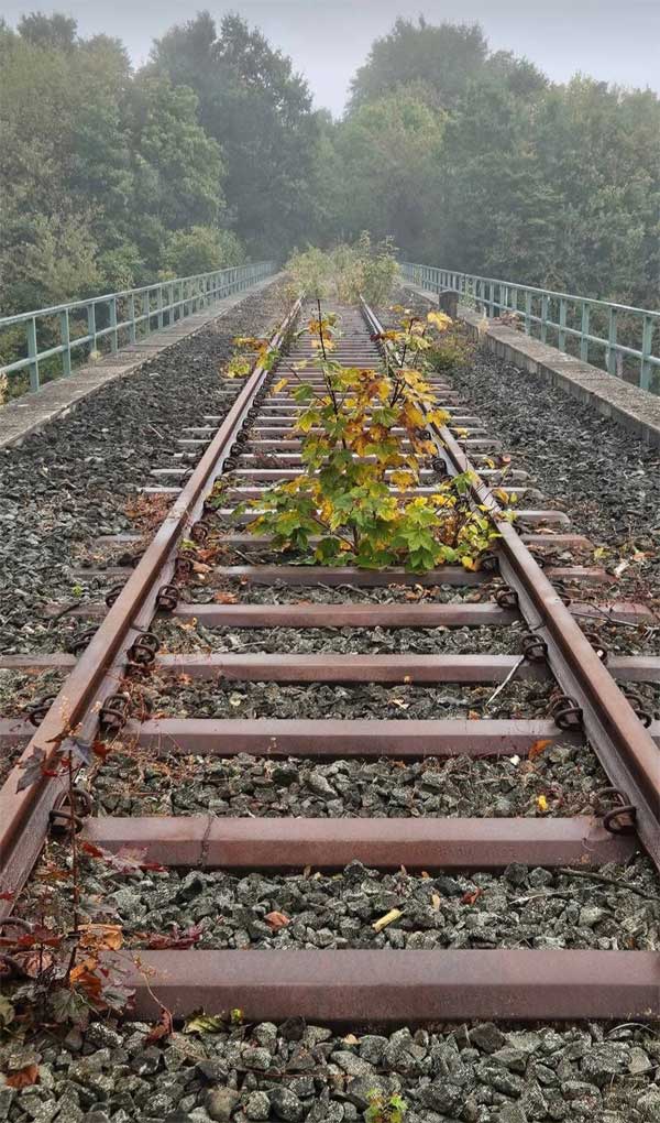 Beim Bau einer neuen Straße wurde ein Teil des vorher völlig zugewucherten Bahndamms der Strecke Koblenz-Mayen in Koblenz-Metternich beseitigt.