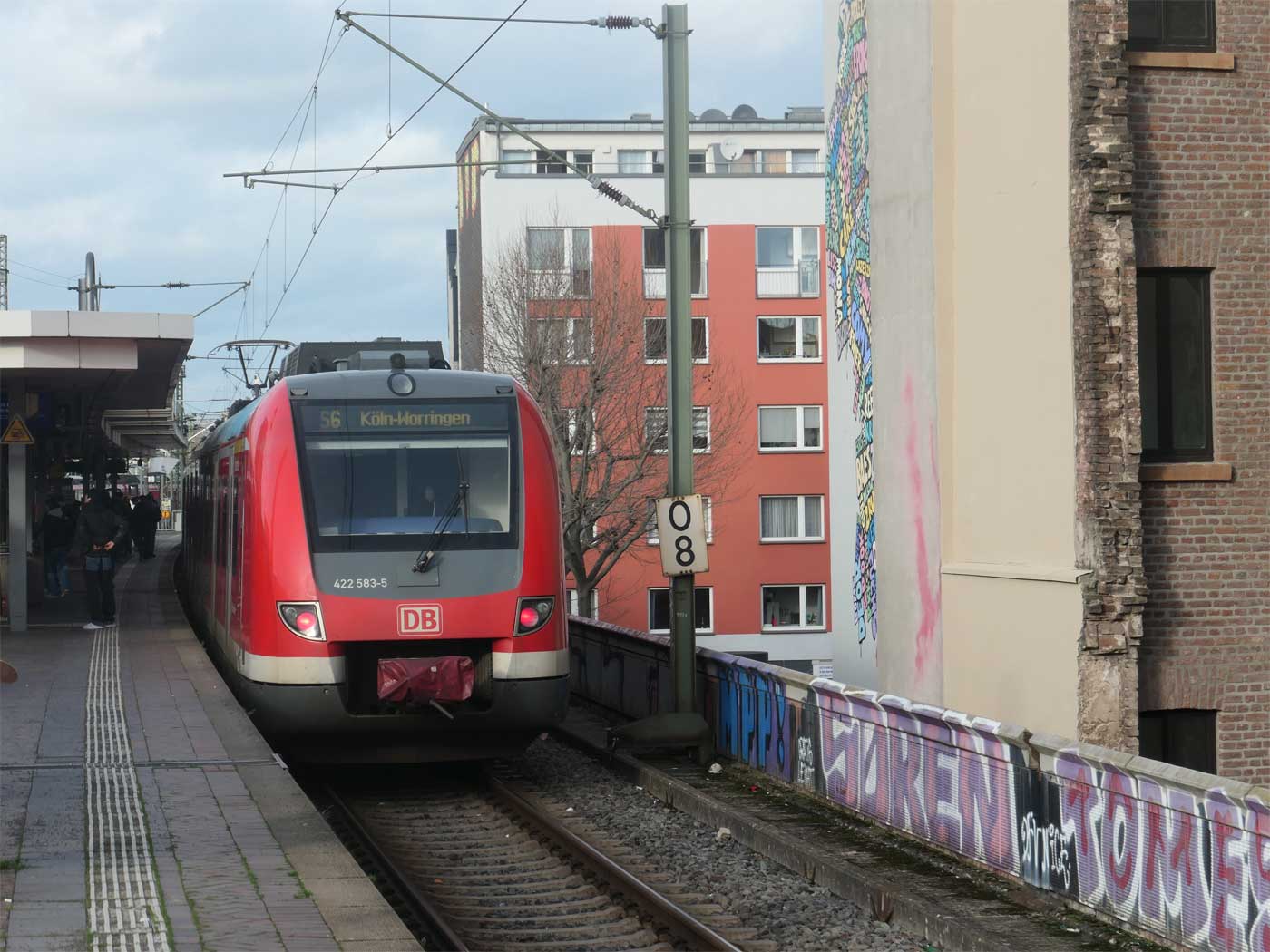 ► | km 1,39 der S-Bahn-Strecke Köln Hbf 0,0 - Köln-Worringen 14,82 (2620) mit weiterlaufender Kilometrierung | |