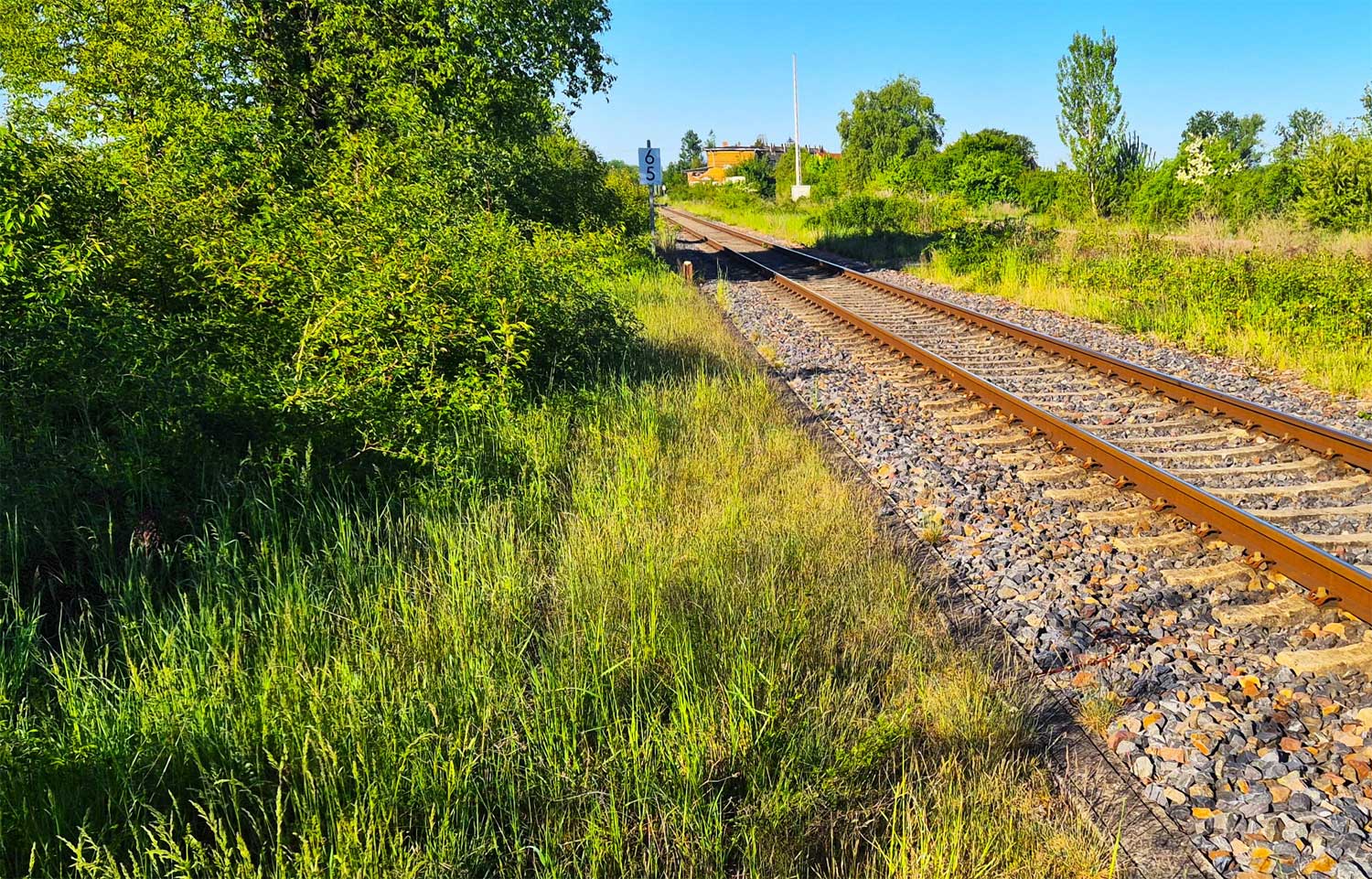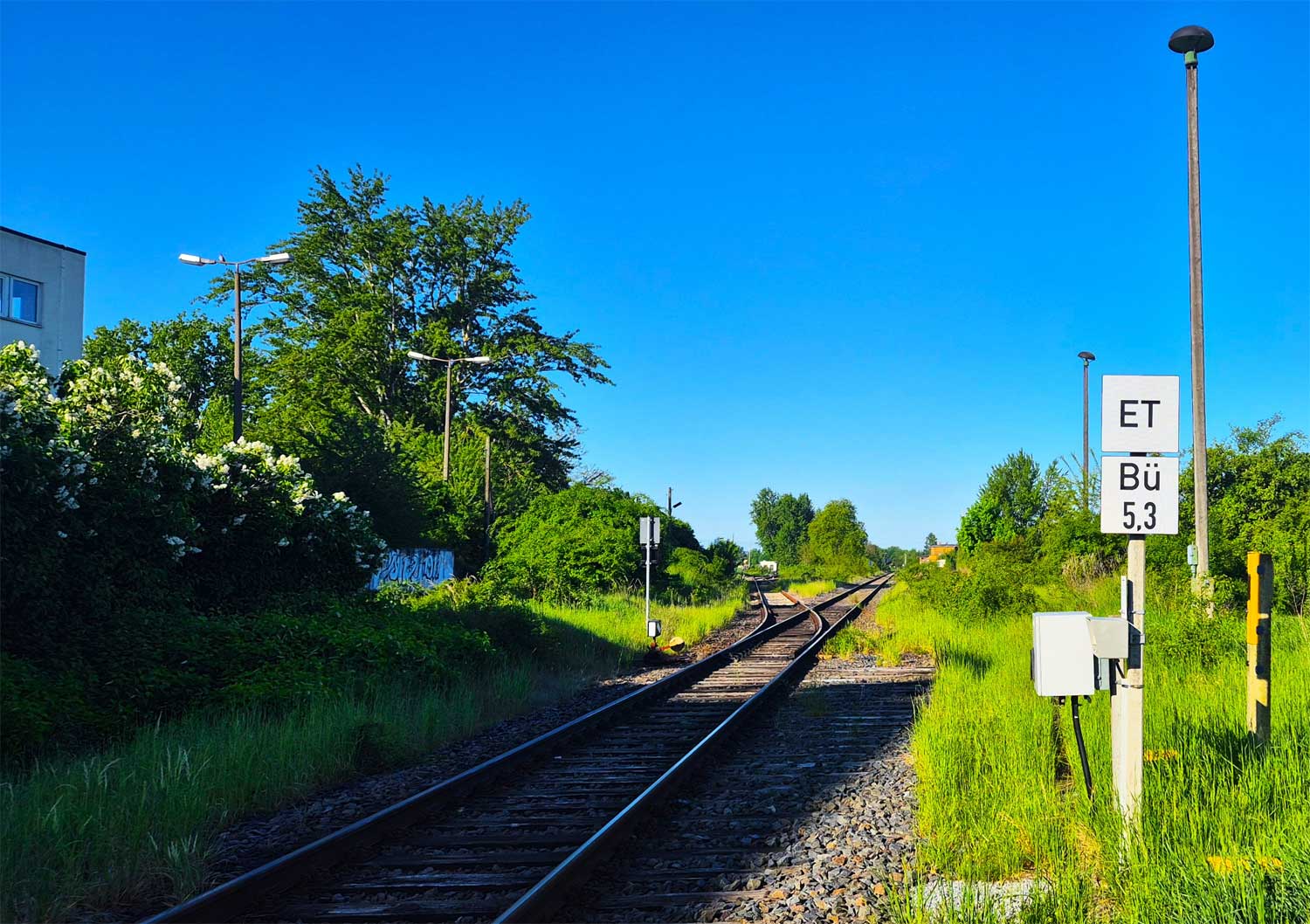 bei km 2,4 an der Awanst Könnern Zuckerfabrik - Blich Richtung Baalberge
