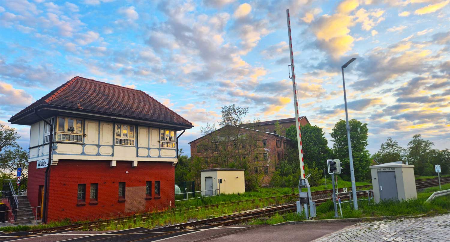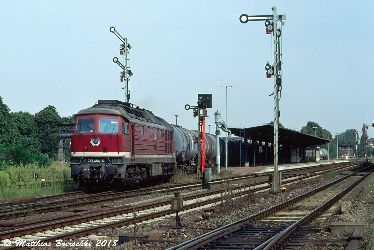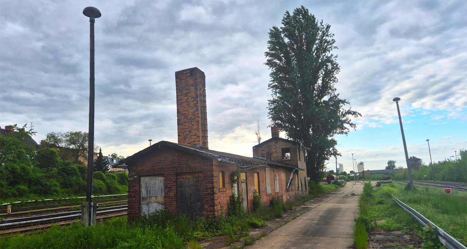 km 0,3 der Anschlussbahn zur Zuckerfabrik, nach dem 2. Weltkrieg wurde daraus eine Spiritusfabrik und in den 1950er Jahre der VEB Galvano