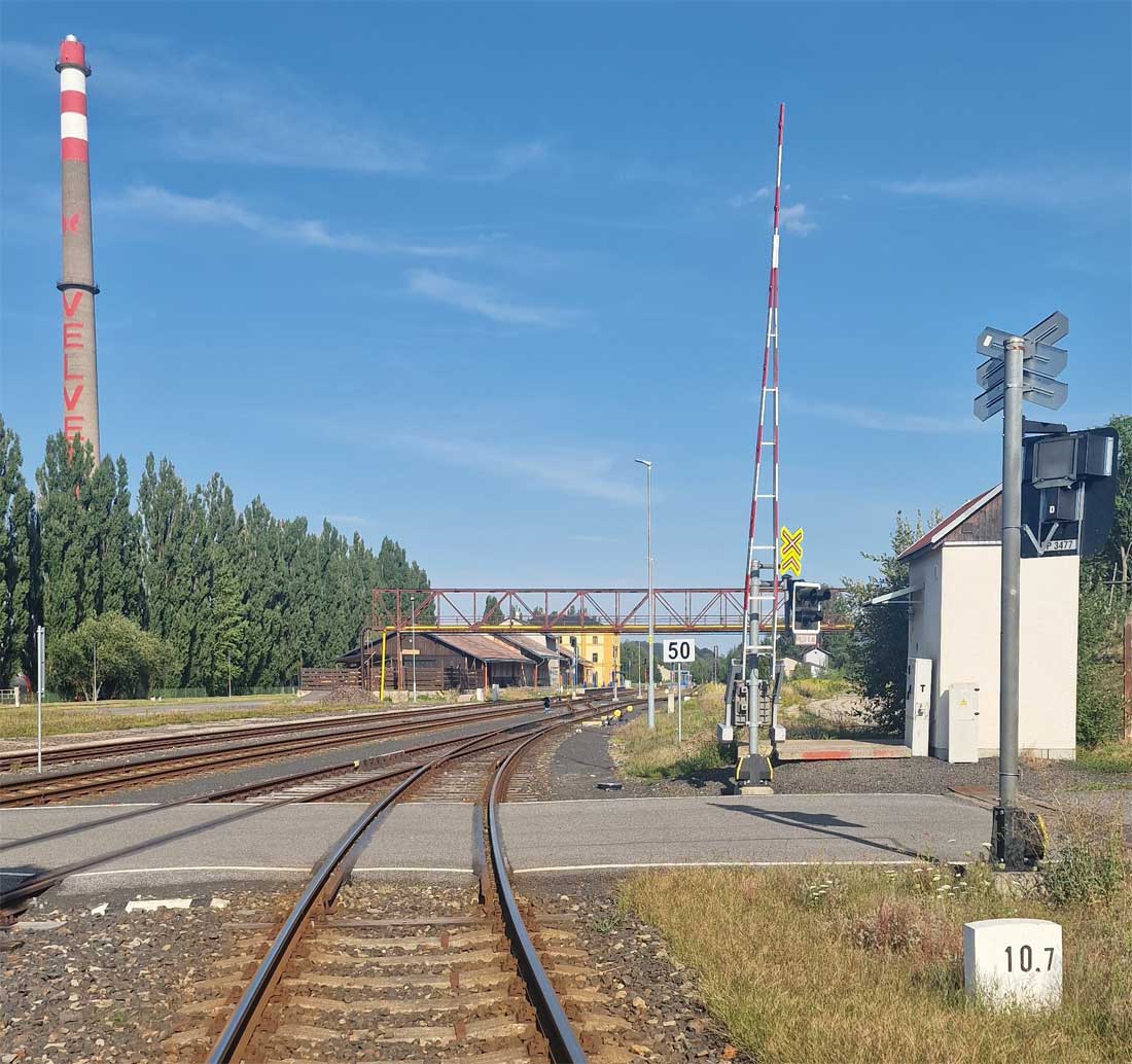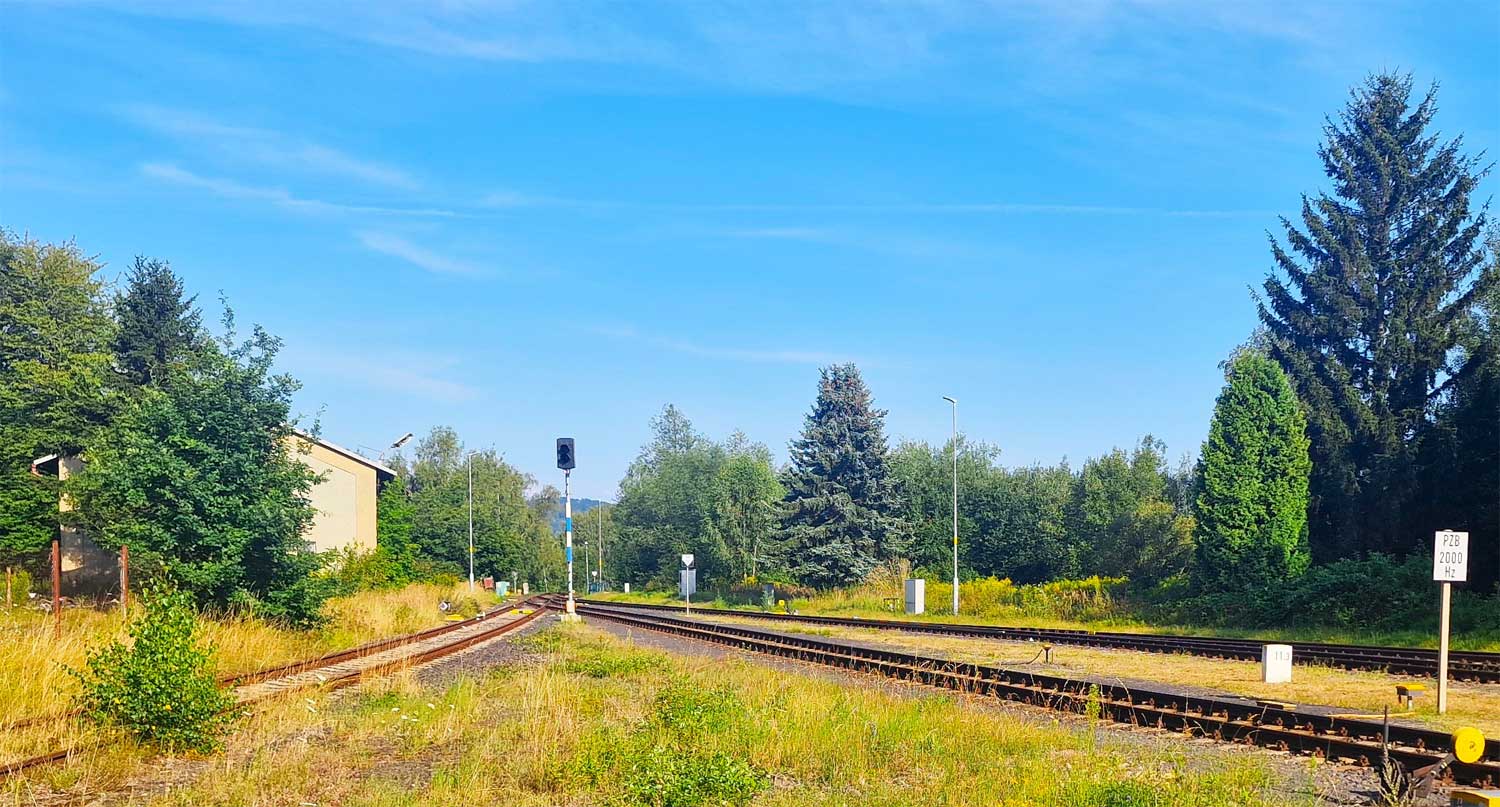Grenze | 11,457 | km 9,688 der Strecke Mittelherwigsdorf (Sachs) 0,0 - Staatsgrenze Deutschland/Tschechien 9,688 - Varnsdorf 10,098 - Staatsgrenze Tschechien/Deutschland 13,705 - Eibau 23,45 (MWE) |