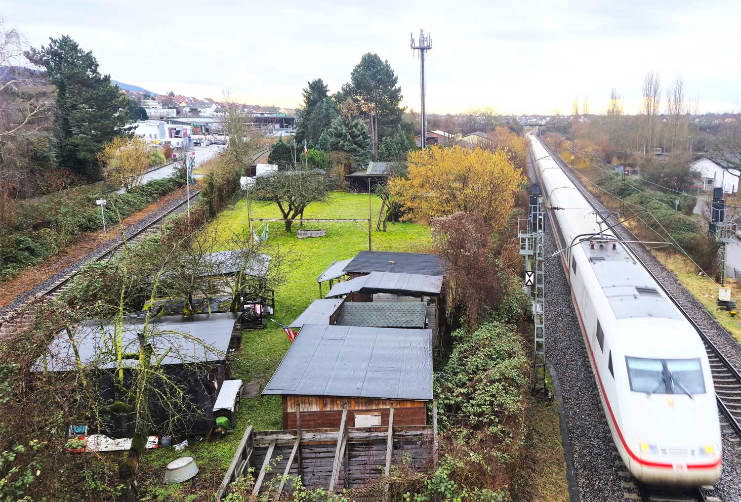 Rechts die Strecke