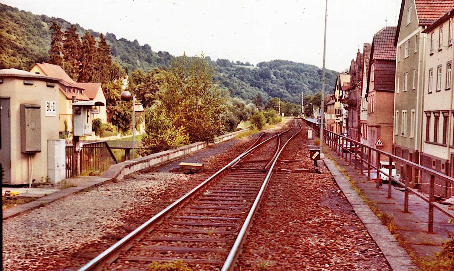 km 1,0 (linkes Gleis) in Lauda - Blick Richtung Wertheim