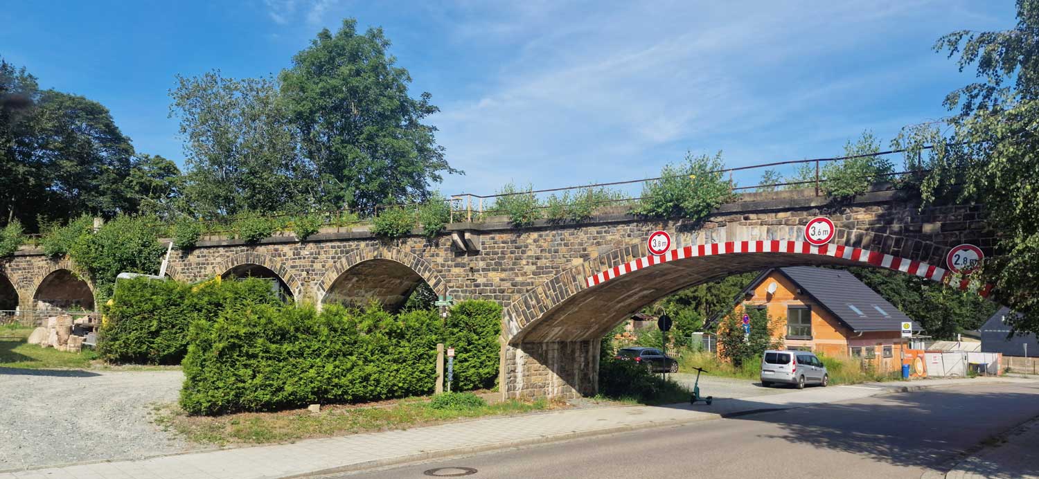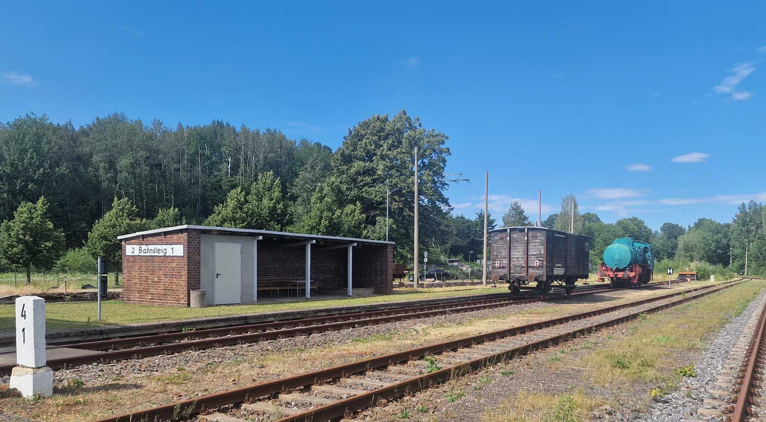 Wüstenbrand | 12,14 | km 94,31 der Strecke Dresden Hbf -0,05 - Karl-Marx-Stadt Hbf 79,73 - Zwickau Hbf 128,35 - Abzw. Werdau Bogendreieck (Neumarker Spitze) 136,23 (DW) |