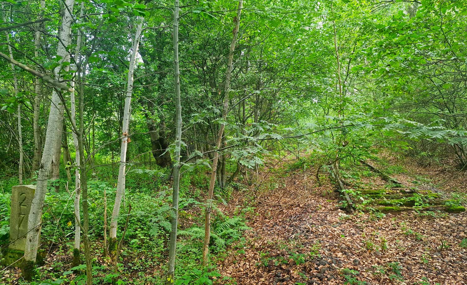 km 6,0 (Stein und Tafel) zwischen Hartmannsdorf (b Chemnitz) und Wittgensdorf ob Bf - Blick Richtung Wittgensdorf ob Bf