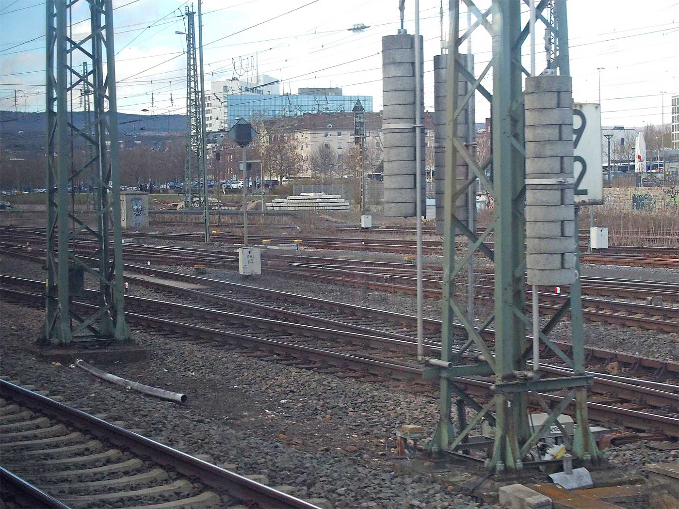 km 8,6 (Tafel und Stein) in Wiesbaden Hbf - Blick Richtung Mainz