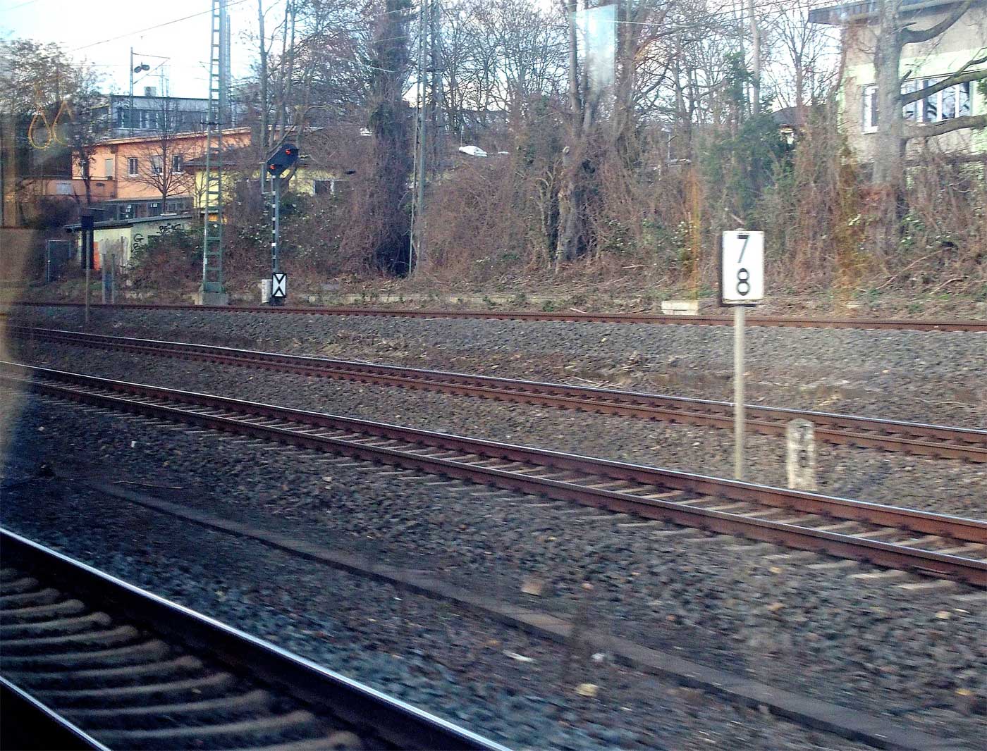 km 7,8 (Stein und Tafel) zwischen Wiesbaden Ost und Wiesbaden Hbf - Blick Richtung Mainz