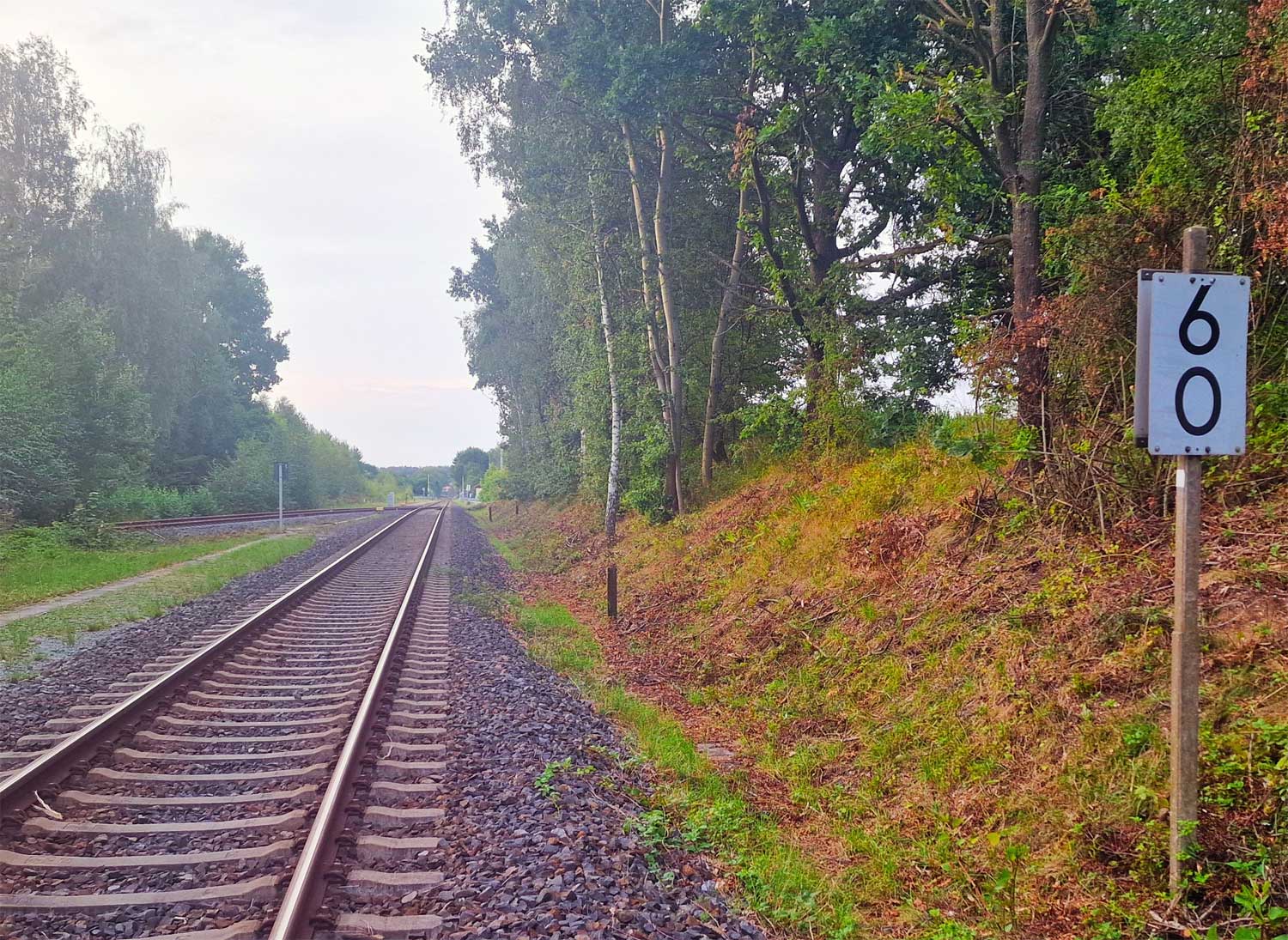 bei km 22,8 (links) in Eibau - Blick Richtung Streckenende