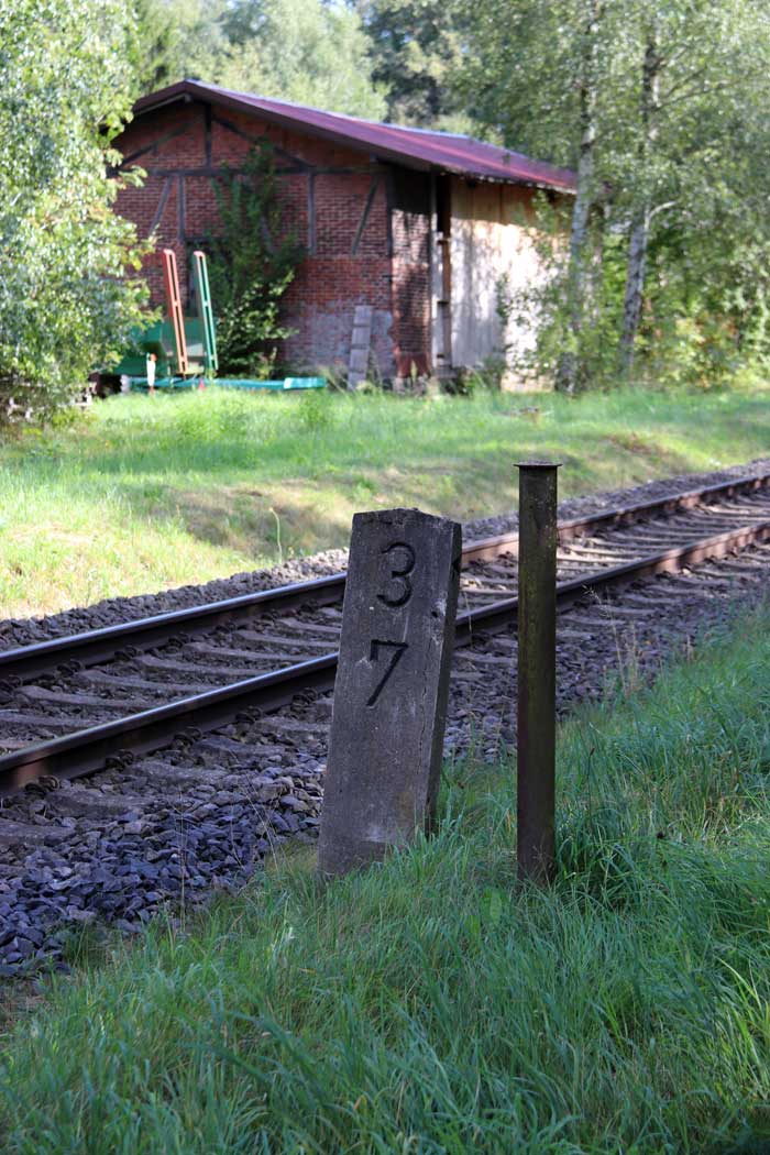 km 23,5 (hinter dem Triebwagen versteckt) gehört zur Strecke