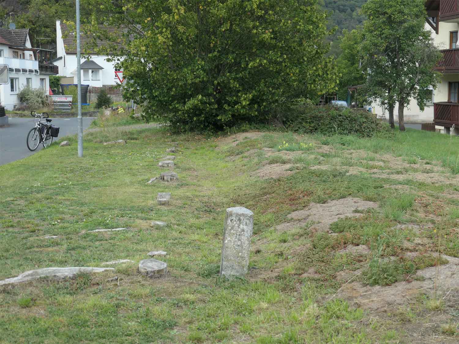km 27,0 (Tafel und Stein) in Kreuzberg - Blick Richtung Remagen