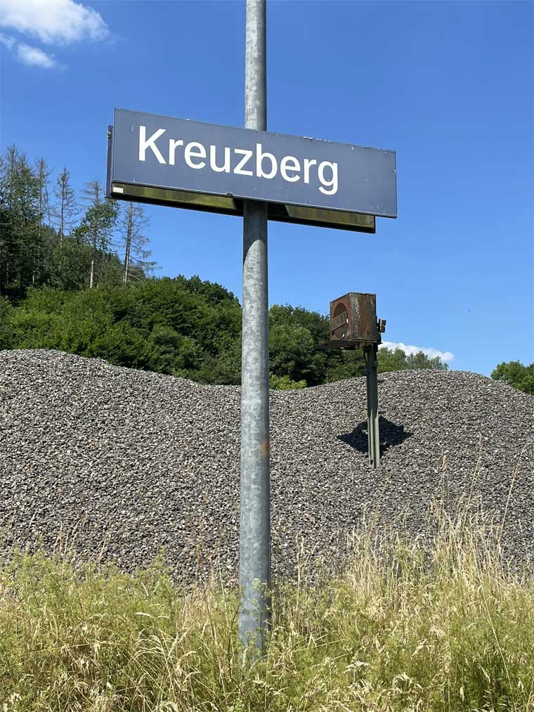 km 26,4 (Stein) und km 26,5 (Tafel) in Kreuzberg - Blick Richtung Adenau