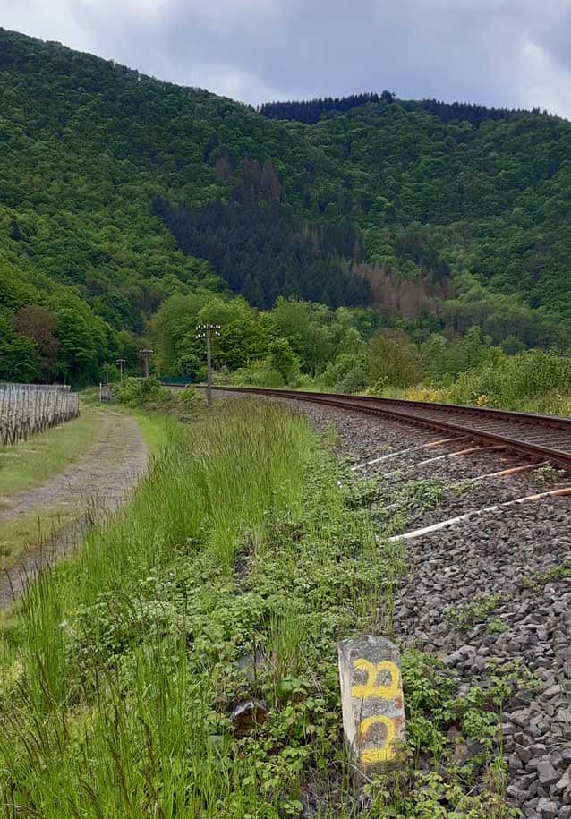 km 18,5 (Tafel und Stein) in Dernau - Blick Richtung Remagen