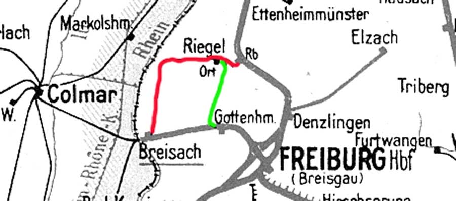 Riegel Reichsbahn | km 183,98 der Strecke Mannheim Hbf - Basel Bad Bf - Konstanz | |