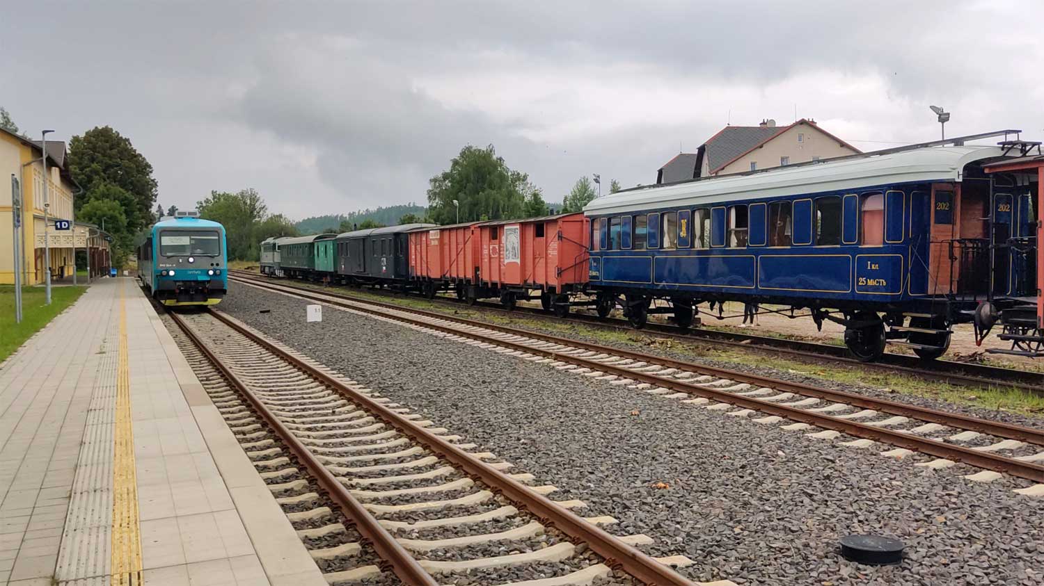 Rumburk (Rumburg) | 0,0 | km 90,912 der Strecke Bakov nad Jizerou (Bakow) 0,0 - Česká Lípa (Böhmisch Leipa) 44,867 - Rumburk (Rumburg) 90,912 - Grenze Tschechien/Deutschland 97,690 - Ebersbach (Sachs) 98,494 |