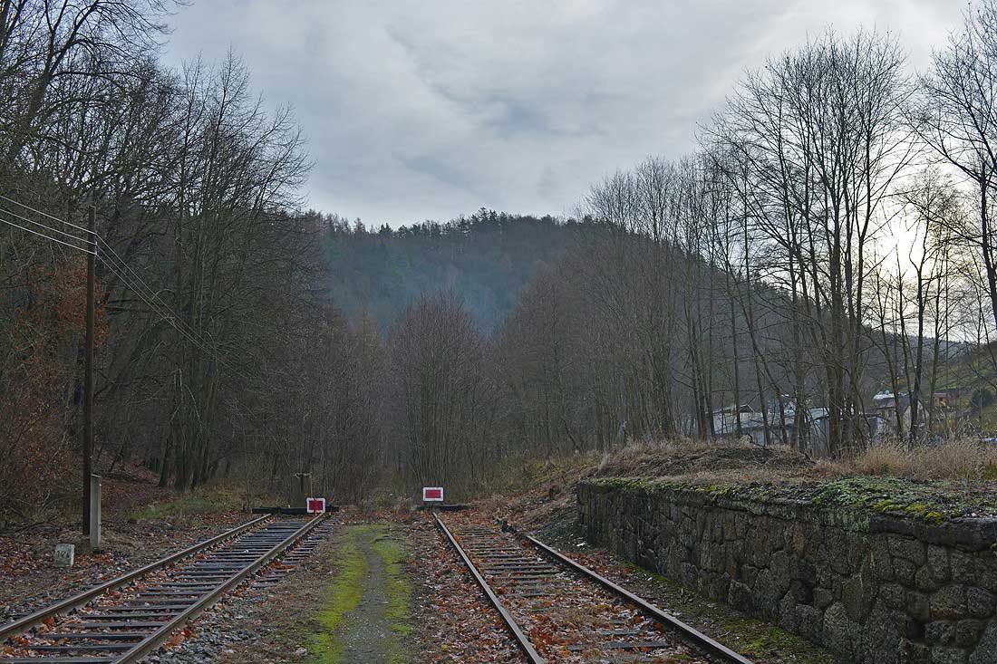 km 14,4 in Loket předměstí (Elbogen Fabrik) - Blick Richtung Krásný Jez (Schönwehr)