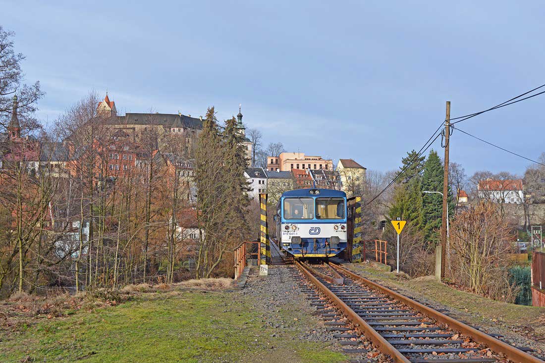 18,564 | km 198,262 der Strecke odb. Praha-Bubny (Abzw Prag-Bubna) 0,0 - Kladno 28,04 - Lužná u Rakovníka (Luschna-Lischan) 61,267 - Sádek u Žatce (Satkau) 81,745 - Chomutov (Komotau) 125,173 - Cheb (Eger) 237,252 |