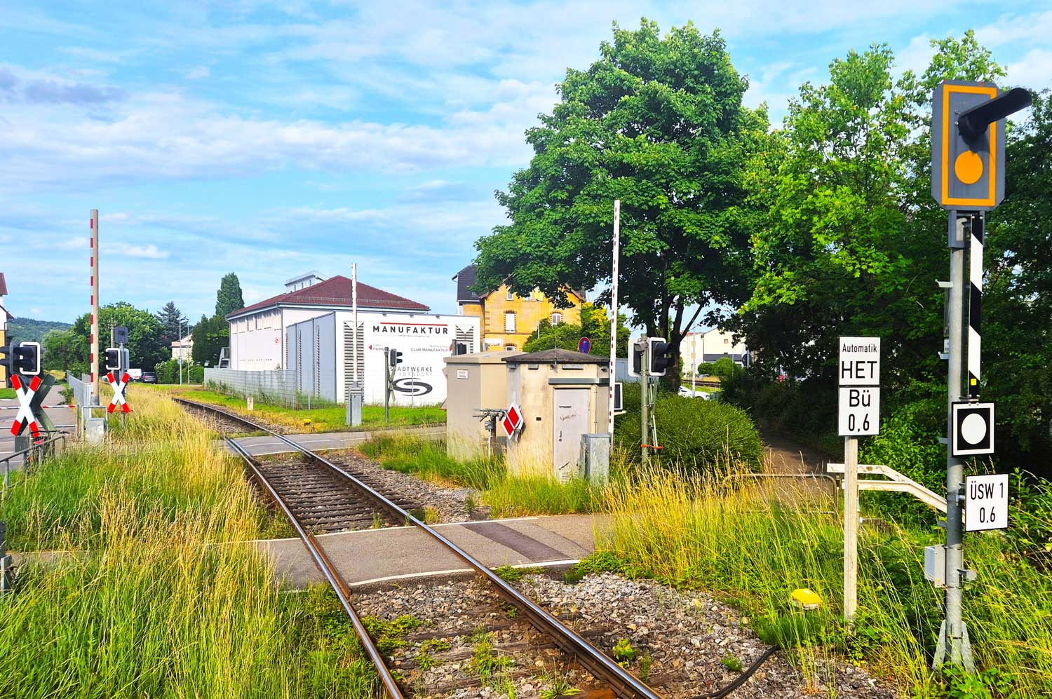 BÜ km 0,6 und km 0,7 bei Schorndorf - Blick Richtung Welzheim