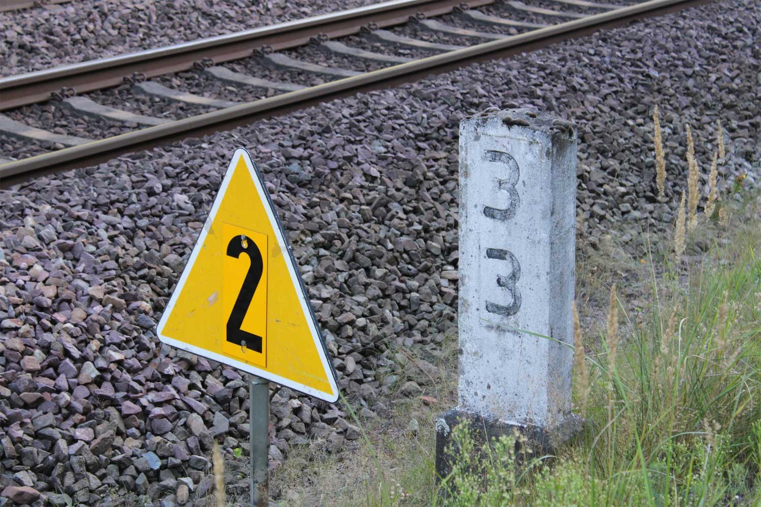 km 25,6 (Tafel, Gegenrichtungsgleis) zwischen Roßlau, Abzw Ai und Meinsdorf/Roßlau Abzw Ra