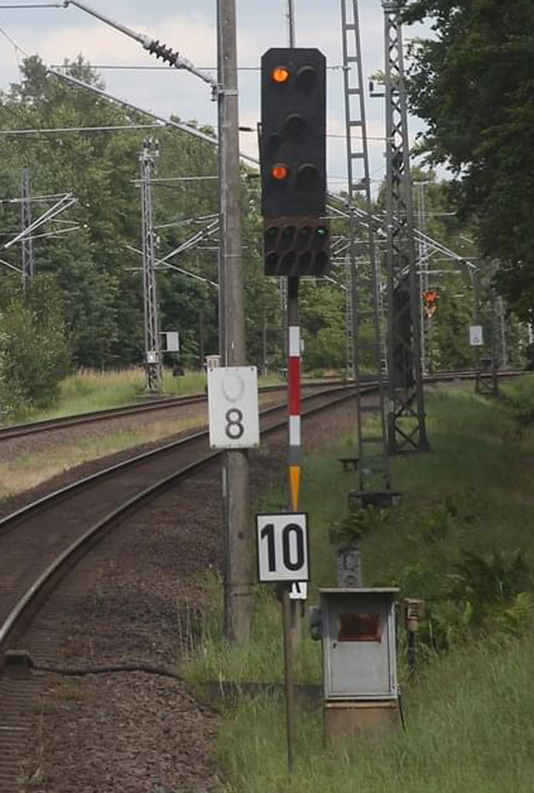 km 25,8 (Tafel, Gegenrichtungsgleis) und km 25,9 (Stein, Gegenrichtungsgleis) zwischen Roßlau, Abzw Ai und Meinsdorf/Roßlau Abzw Ra