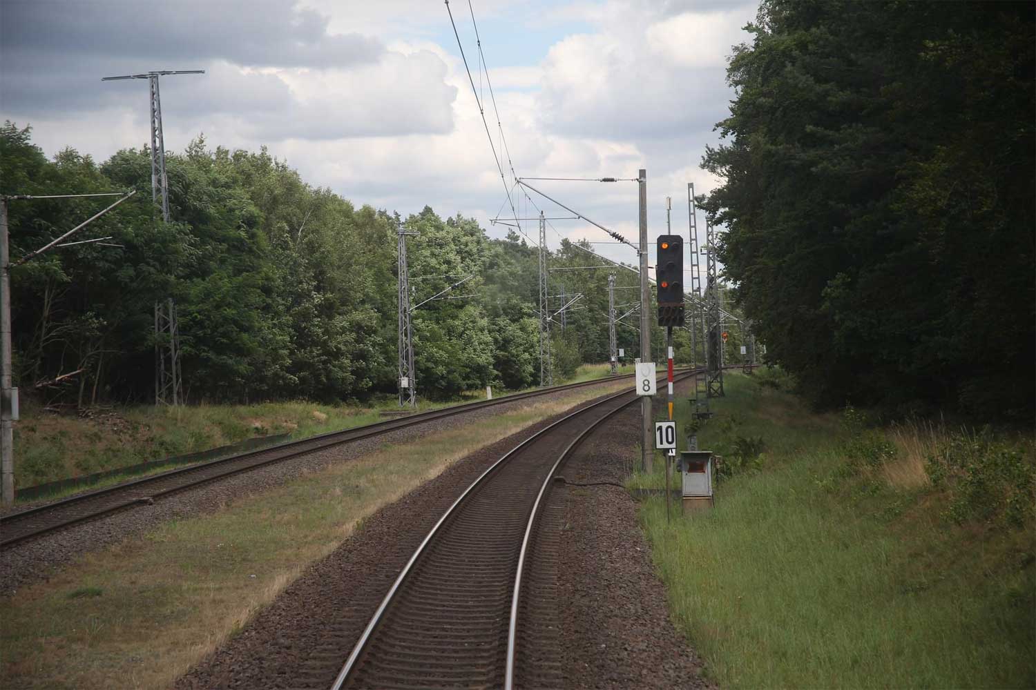 km 26,8 (Gegenrichtungsgleis) zwischen Roßlau, Abzw Ai und Meinsdorf/Roßlau Abzw Ra - Blick Richtung Roßlau (Elbe)