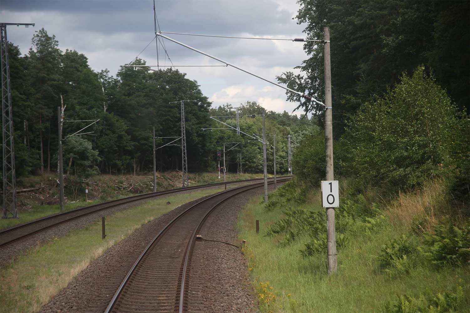 km 25,4 (Stein links) zwischen Roßlau, Abzw Ai und Meinsdorf/Roßlau Abzw Ra - Blick Richtung Wiesenburg