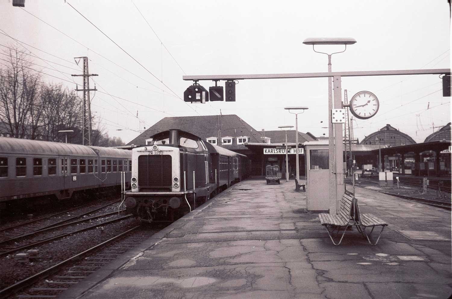 Karlsruhe Hbf | 27,01 | km 72,90 der Strecke Mannheim Hbf 0,0 - Heidelberg Hbf (alt) 18,71 (neu) 17,490 = 19,100 - Karlsruhe Hbf 72,90 - Basel Bad. Bf 270,69 - Singen (Hoh) 384,08 - Konstanz 414,34 - Staatsgrenze 414,83 |