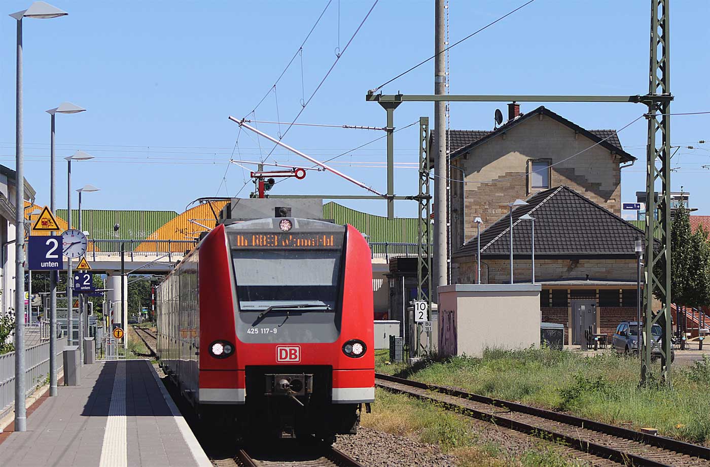 Bürstadt | 10,22 | km 23,01 der Strecke Mannheim Hbf 0,0 - Lampertheim 17,55 - Biblis 28,11 - Goddelau-Erfelden 45,71 - Groß Gerau-Dornberg 54,46 - Frankfurt (Main)-Sportfeld 74,76 |