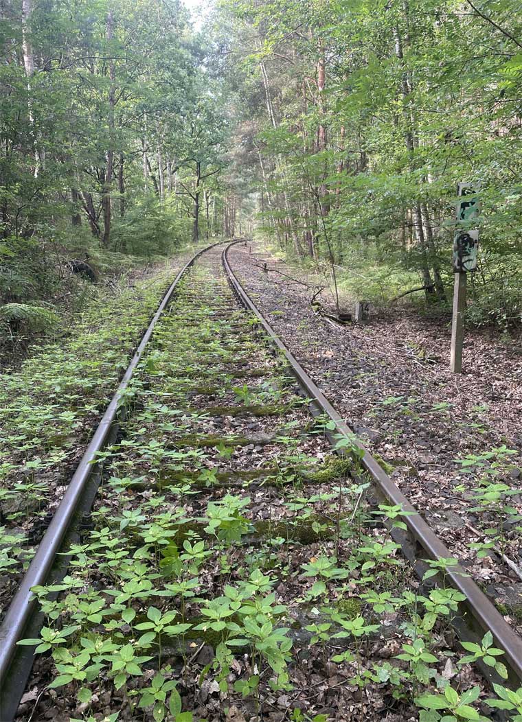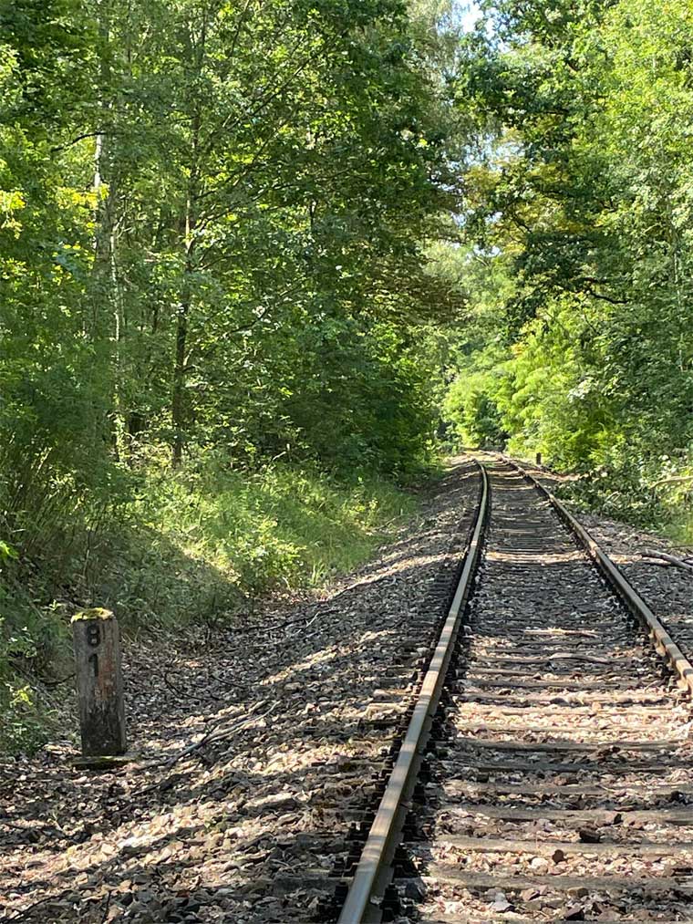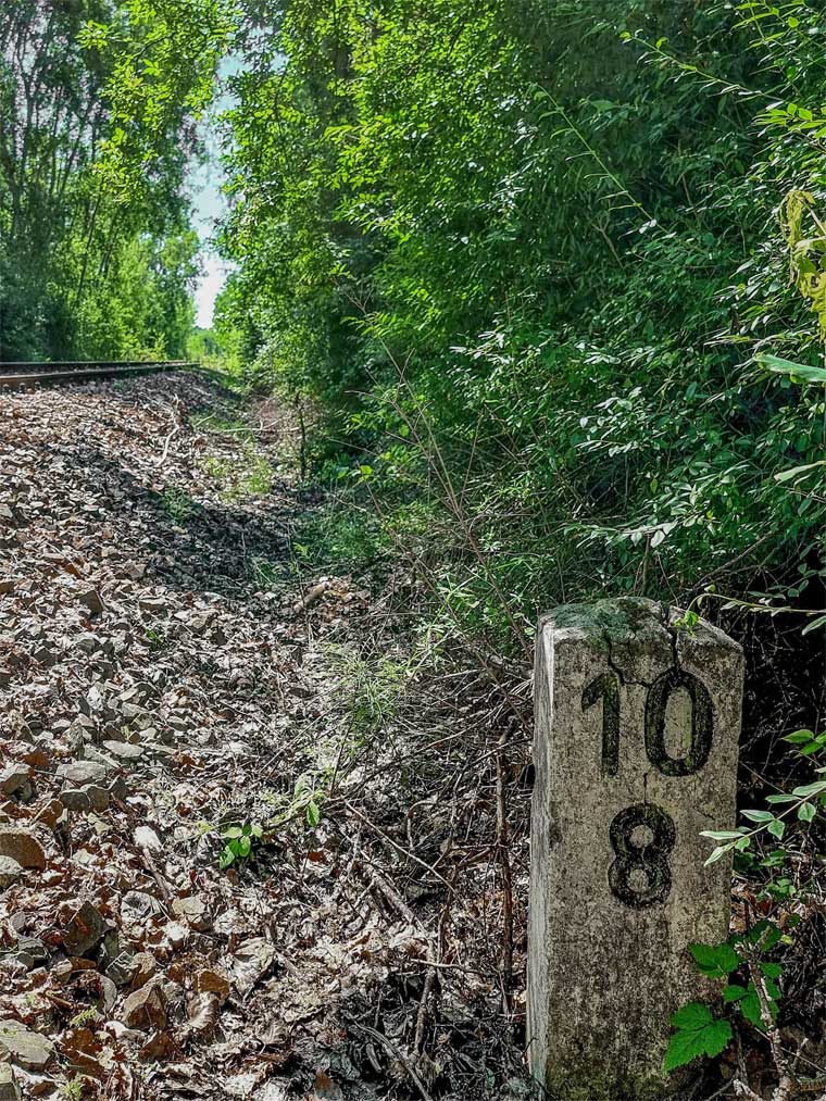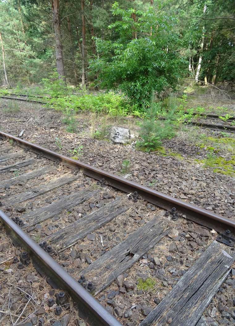 km 38,2 der Strecke [Dahme (Mark) Klbf 0,0] - Hohenseefeld 10,87 - Jüterbog 38,2 (Jüterbog-Luckenwalder Kreiskleinbahnen) Spurweite 750 mm |
