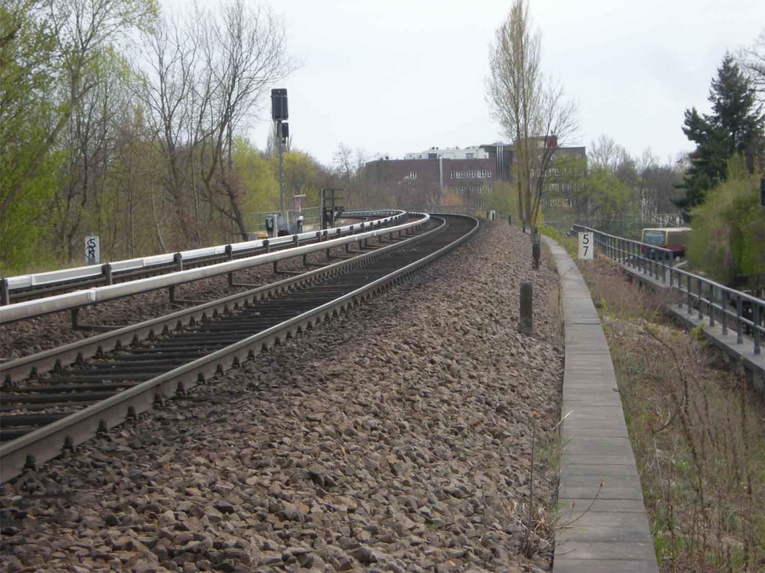 Oben km 5,5 der Gleise der S-Bahnstrecke