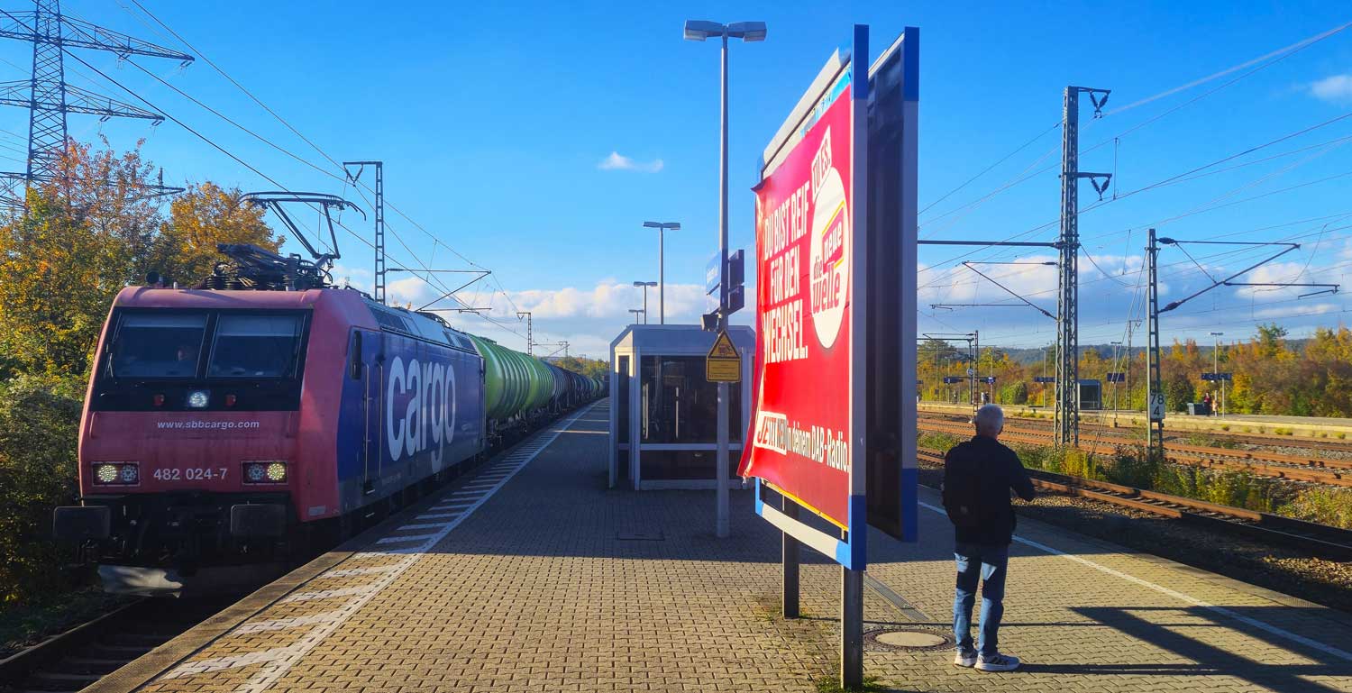 Ganz rechts das Gegenrichtungsgleis der Strecke
