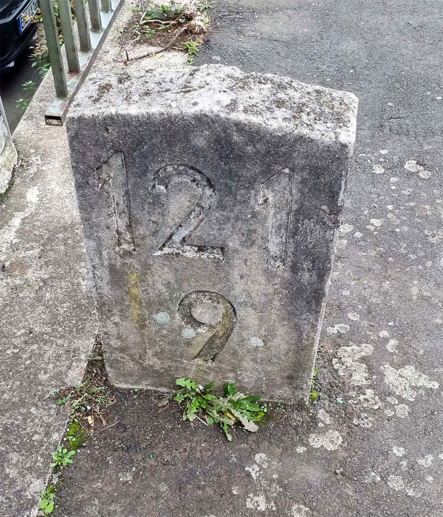 und km 125,6 (Tafel und Stein) und km 125,7 (Stein, links etwas verdeckt) - Blick Richtung Frankfurt (Main)