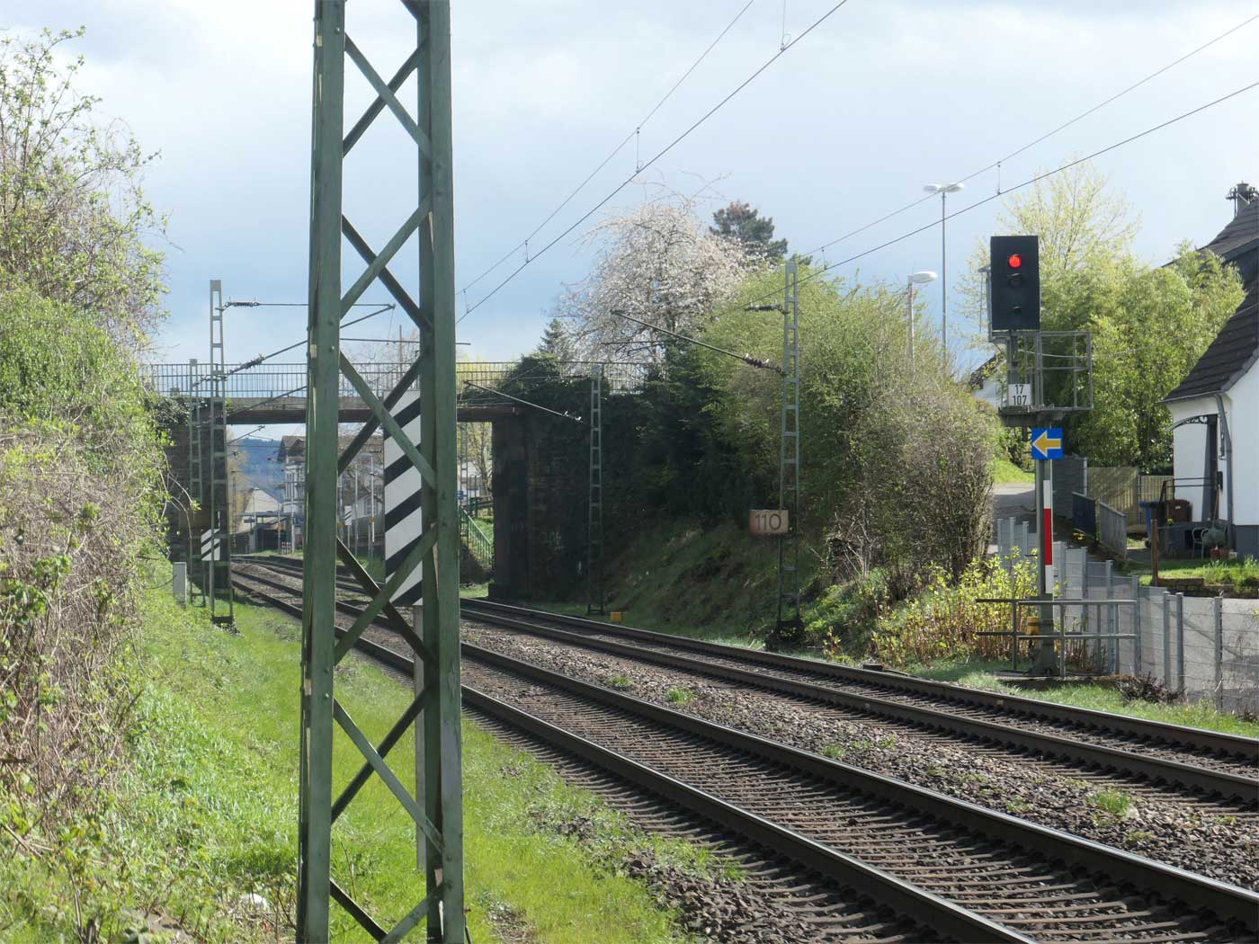km 9,98 der Strecke Köln-Deutz 0,0 - Troisdorf 20,06 - Au (Sieg) 64,76 - Betzdorf (Sieg) 82,97 - Haiger 118,83 - Dillenburg 125,00 - Wetzlar 153,40 - Gießen 166,00 | ||