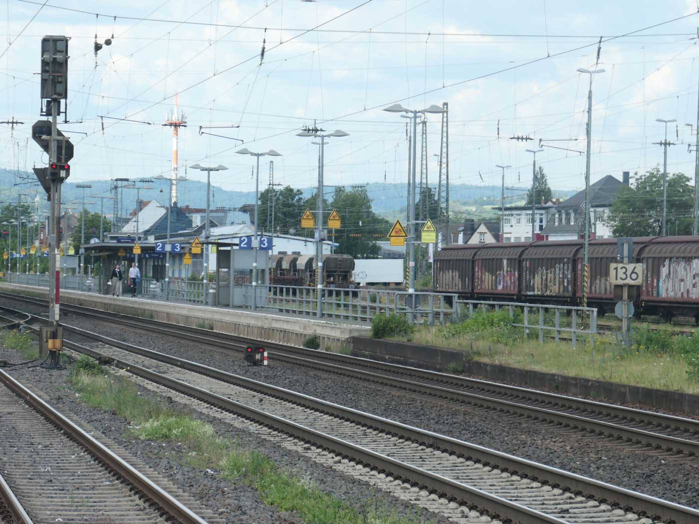 Porz-Wahn | km 12,75 der Strecke Köln-Deutz 0,0 - Troisdorf 20,06 - Au (Sieg) 64,76 - Betzdorf (Sieg) 82,97 - Haiger 118,83 - Dillenburg 125,00 - Wetzlar 153,40 - Gießen 166,00 | |