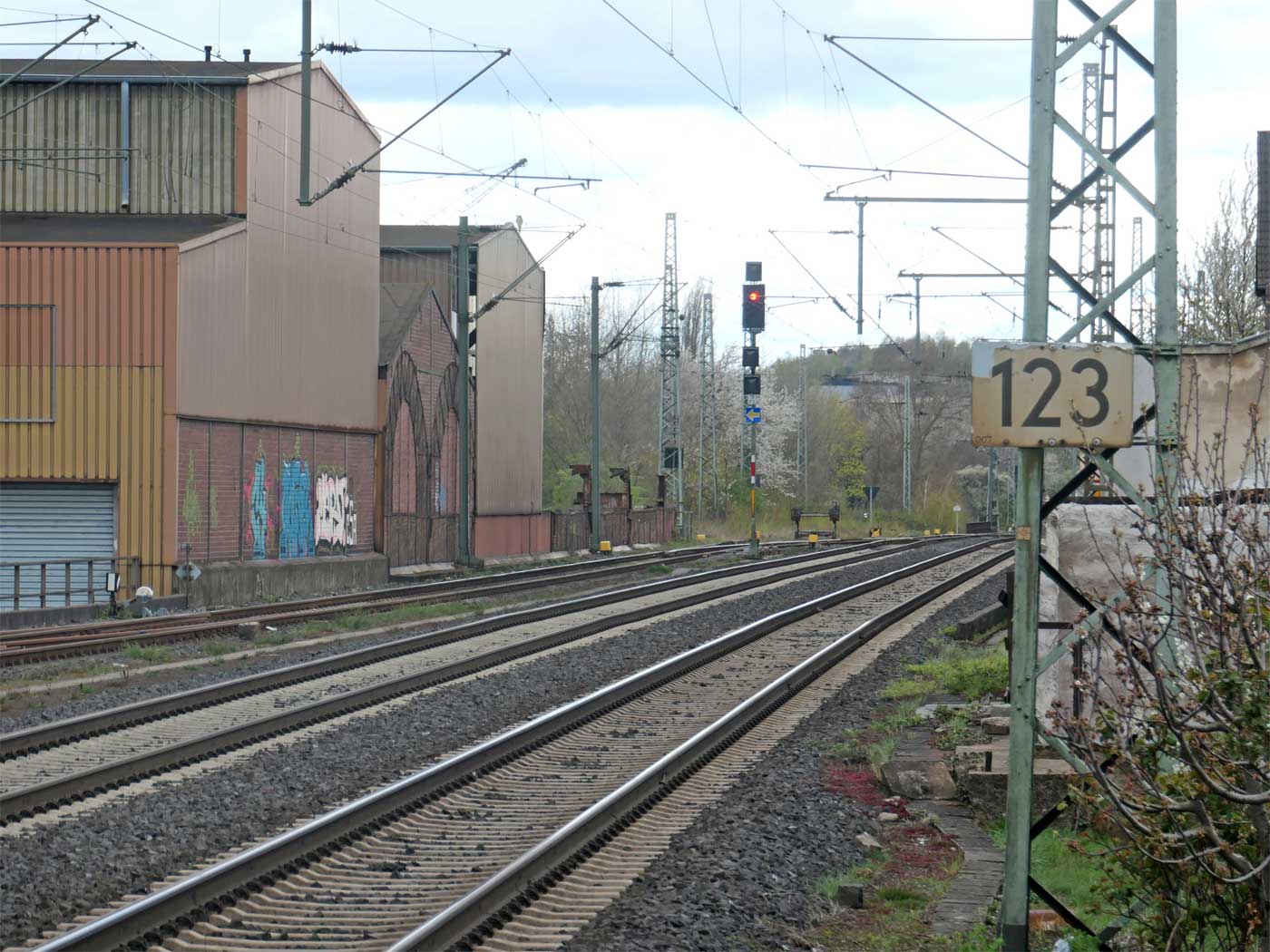 km 154,678 [von Mülheim (Ruhr)-Speldorf] = km 125,700 [von Frankfurt (Main) Hbf]