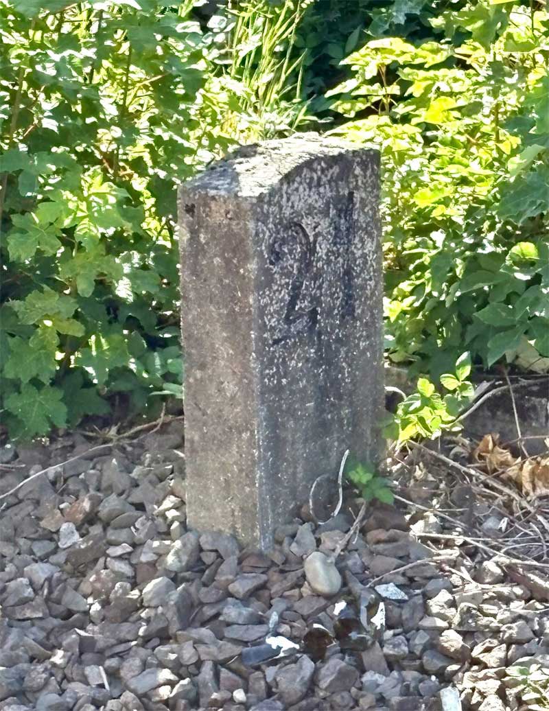 km 72,6 (Tafel und Stein) in Pirmasens Nord - Blick Richtung Germersheim