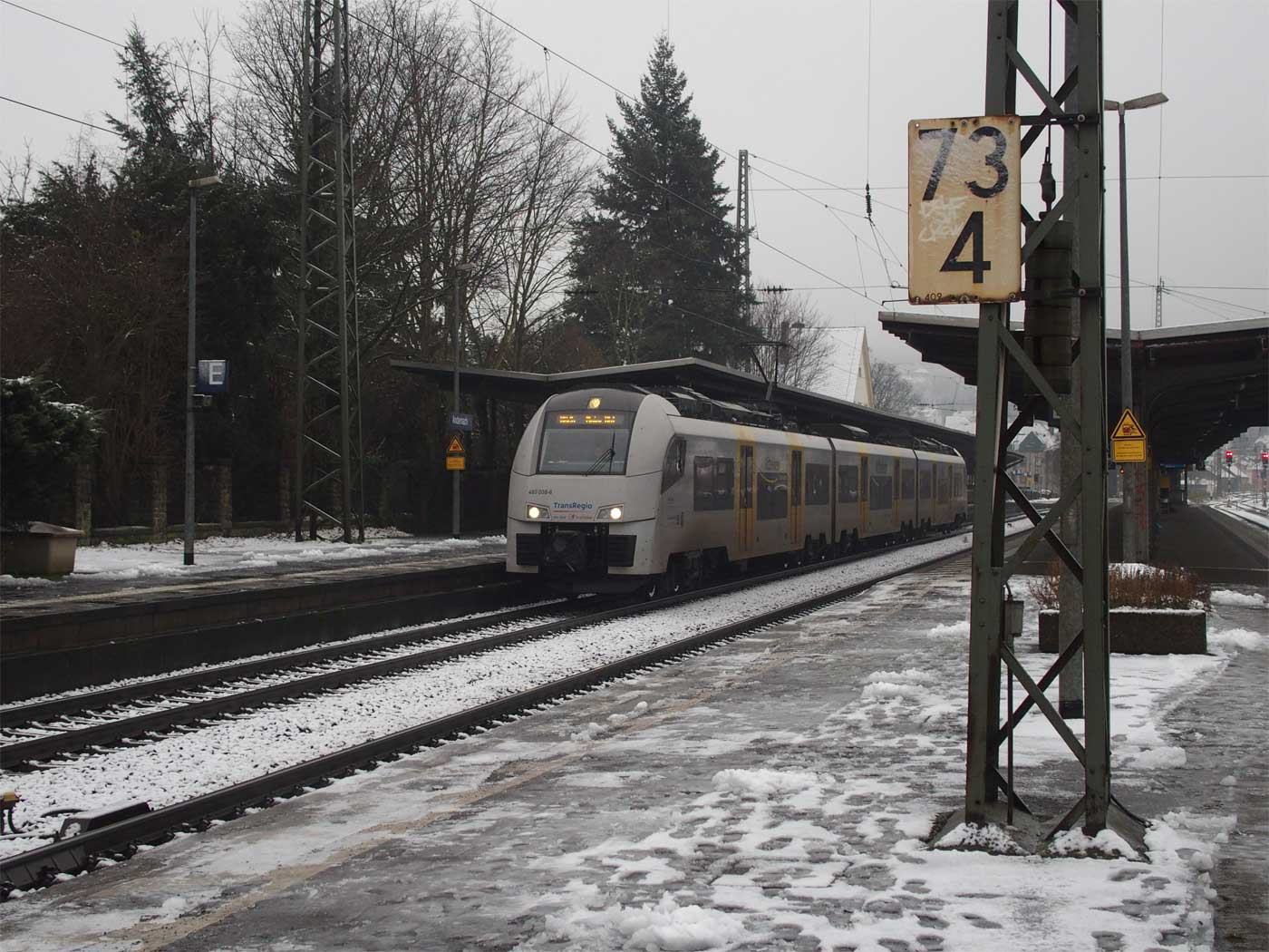 | Andernach | 73,24 | km 0,0 der Strecke Andernach -0,20 - Mayen Ost 23,43 - Daun 71,30 - Gerolstein 94,07 |