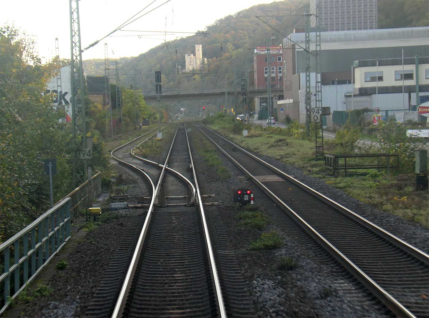 | Koblenz Hbf | 91,20 | km 103,75 der Strecke Wetzlar 0,0 - Limburg (Lahn) 52,17 - Koblenz Hbf 103,75 |
