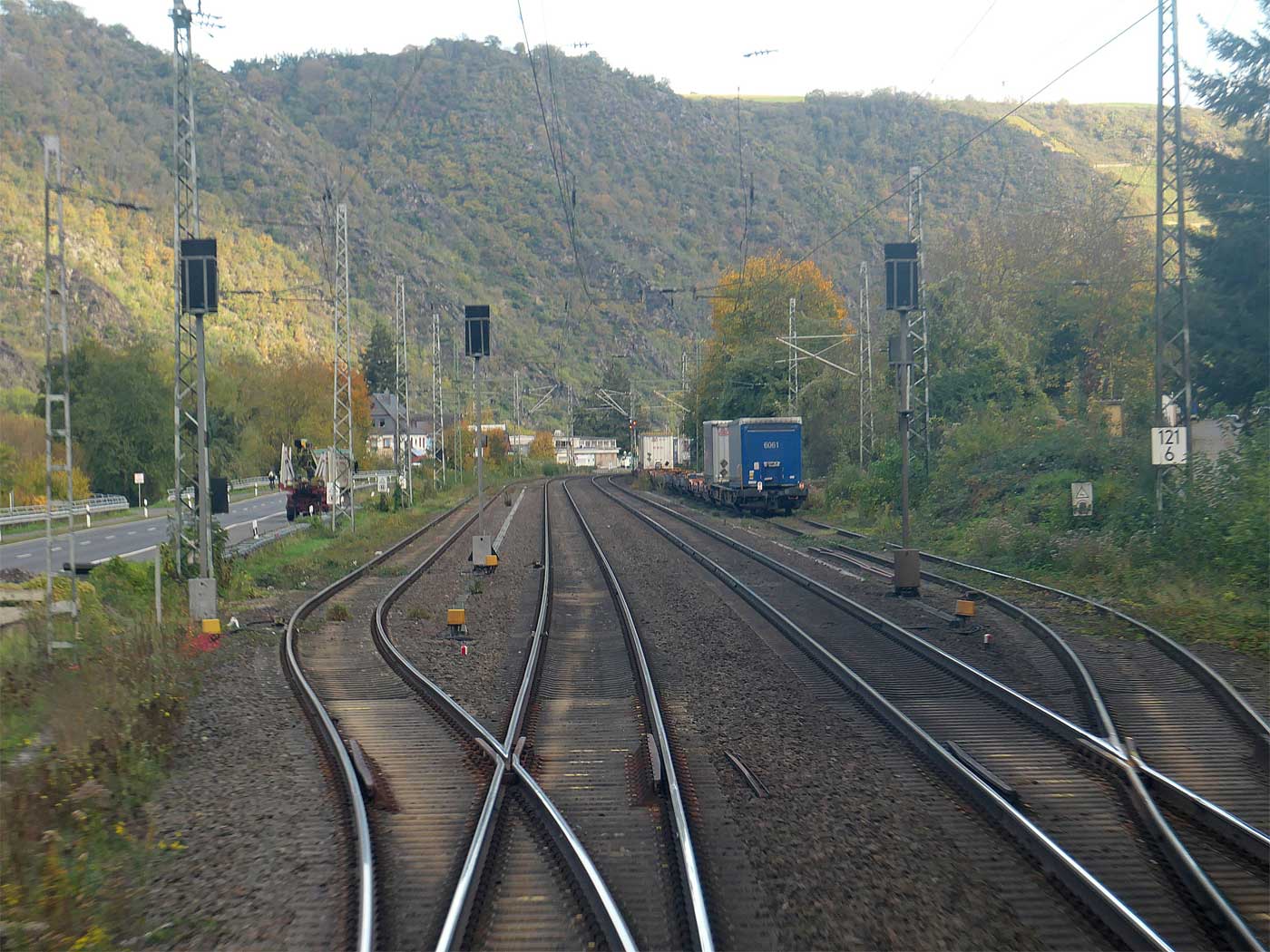 km 142,0 in Niederheimbach - Blick Richtung Bingen/Bingerbrück