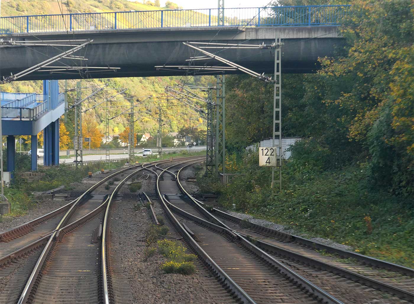 km 150,8 in Bingen Hbf (früher Bingerbrück) - Blick Richtung Köln
