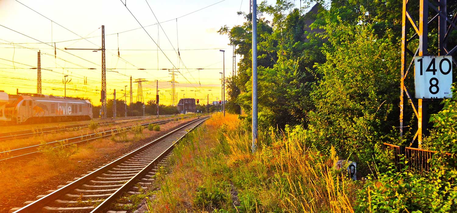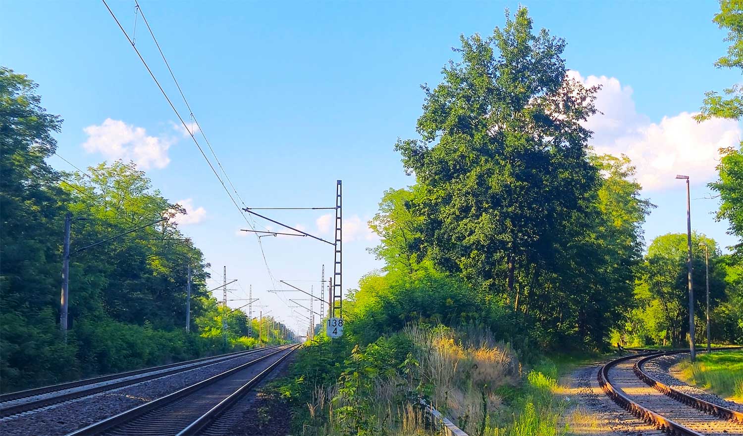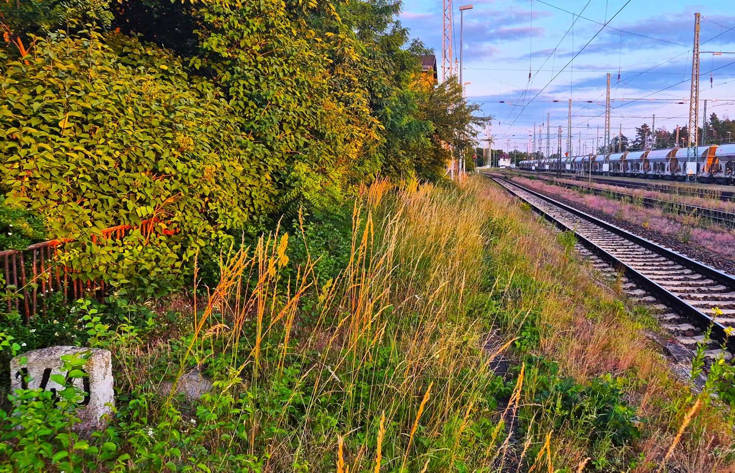 Links die Gleise der Anschlussbahn Bundeswehrdienstleistungszuentrum