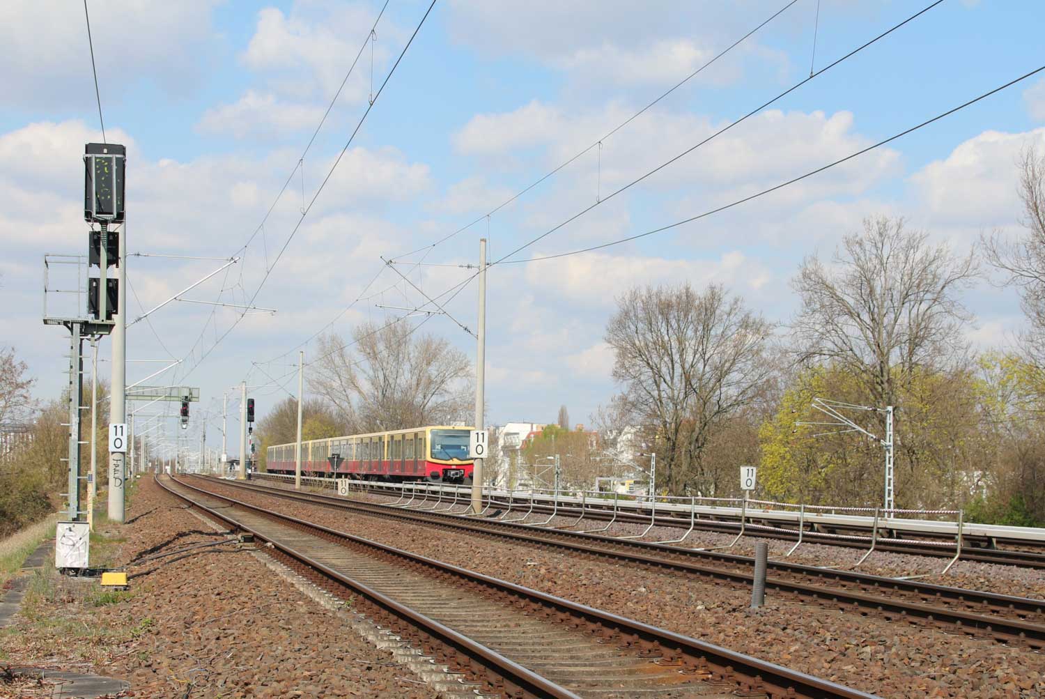 km 12,6 (Gegenrichtungsgleis) am Grünauer Kreuz - Blick Richtung Berlin
