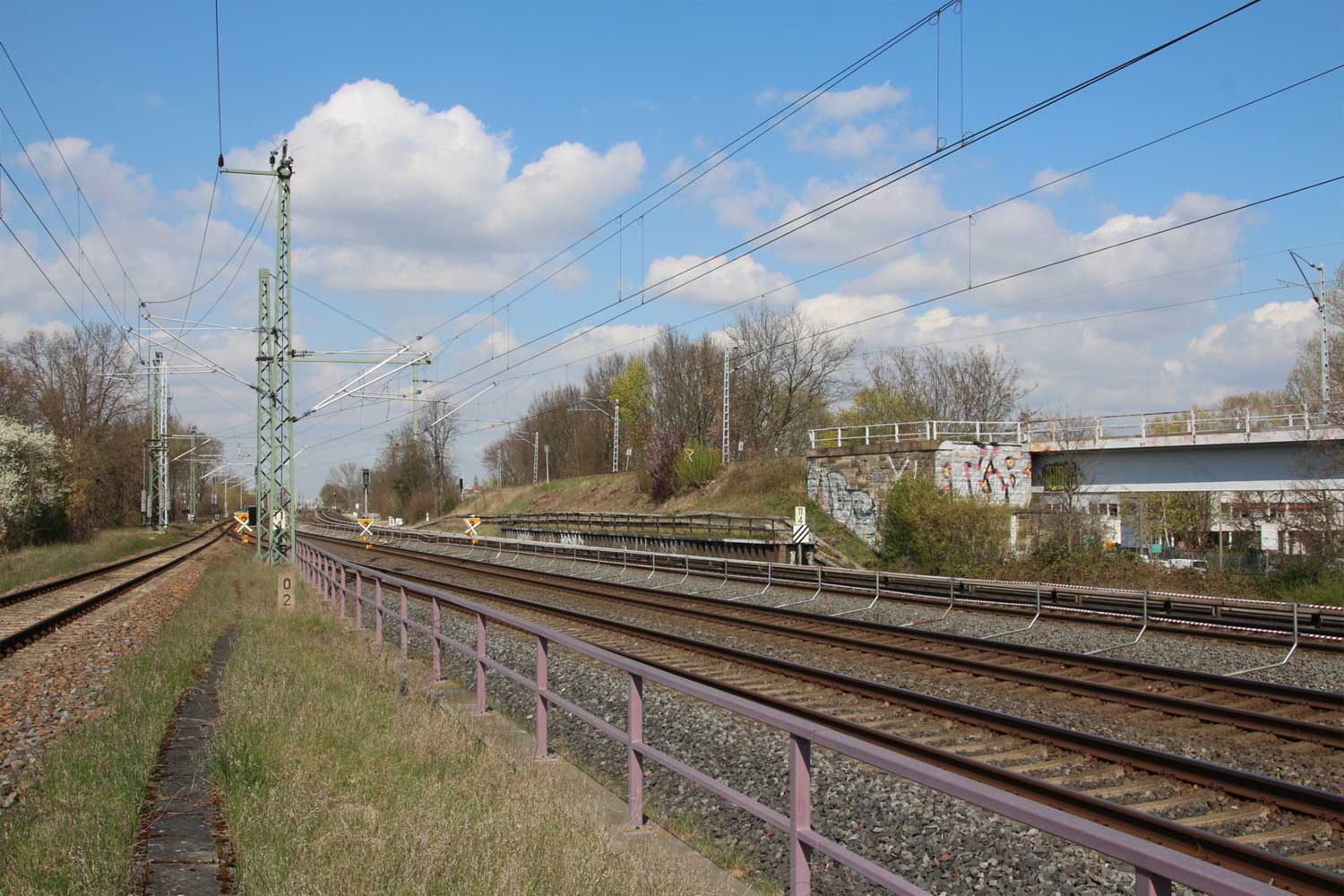 Über die Brücke führen die Gleise des Berliner Außenringes (BAR)