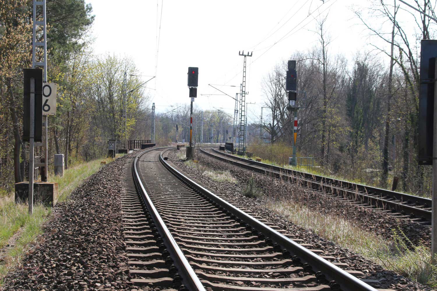 km 12,8 (Richtungsgleis) und km 13,0 (Richtungsgleis) im Bereich Grünauer Kreuz - Blick Richtung Görlitz
