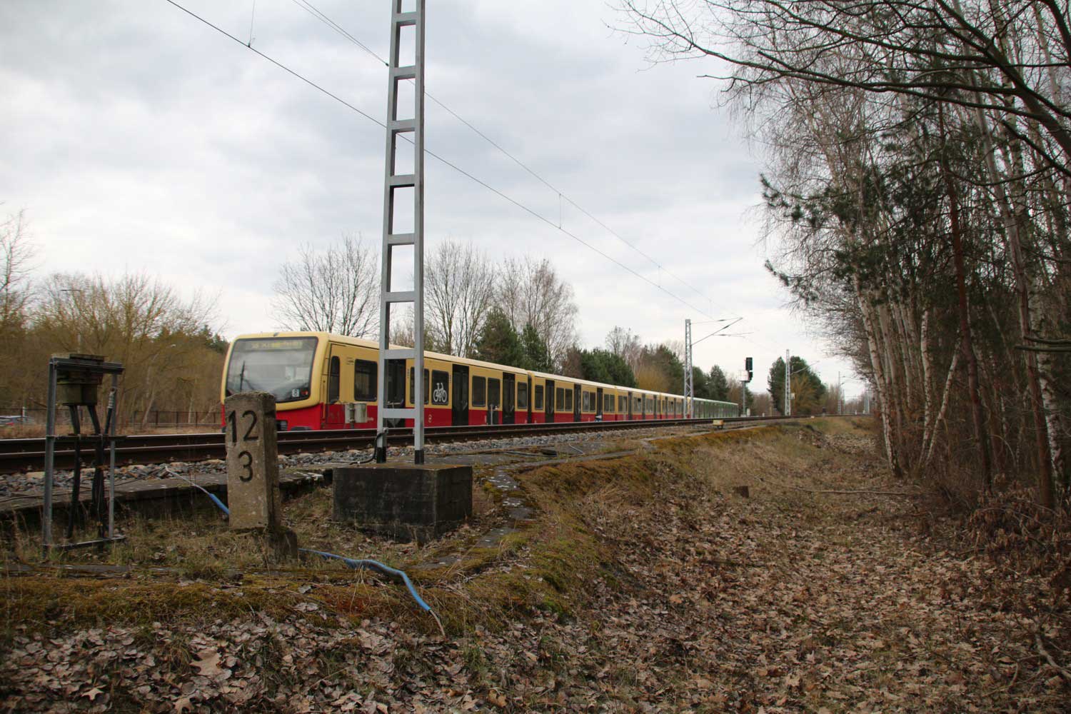 km 12,2 (Tafel im Hintergrund) gehört zur S-Bahnstrecke