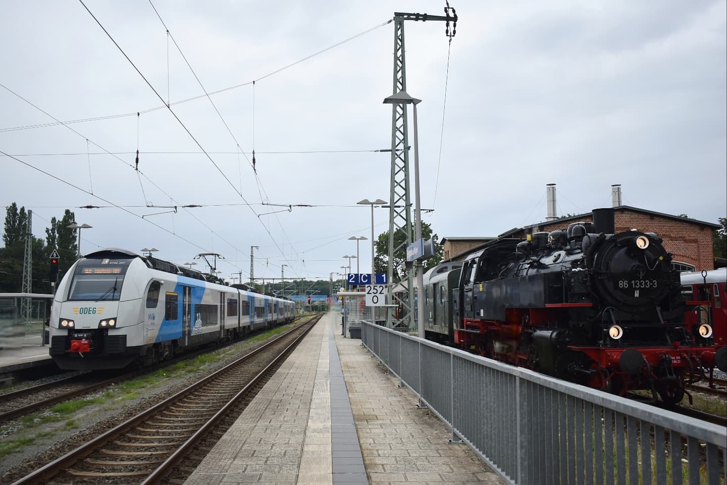 Neustrelitz Reichsb | 98,53 | km 0,0 der Strecke Neustrelitz 0,0 - Waren (Müritz) 34,05 - Lalendorf 69,73 - Plaaz 80,86 - Rostock Hbf 113,20 - Warnemünde Hbf 126,30 (auch 126,48) |