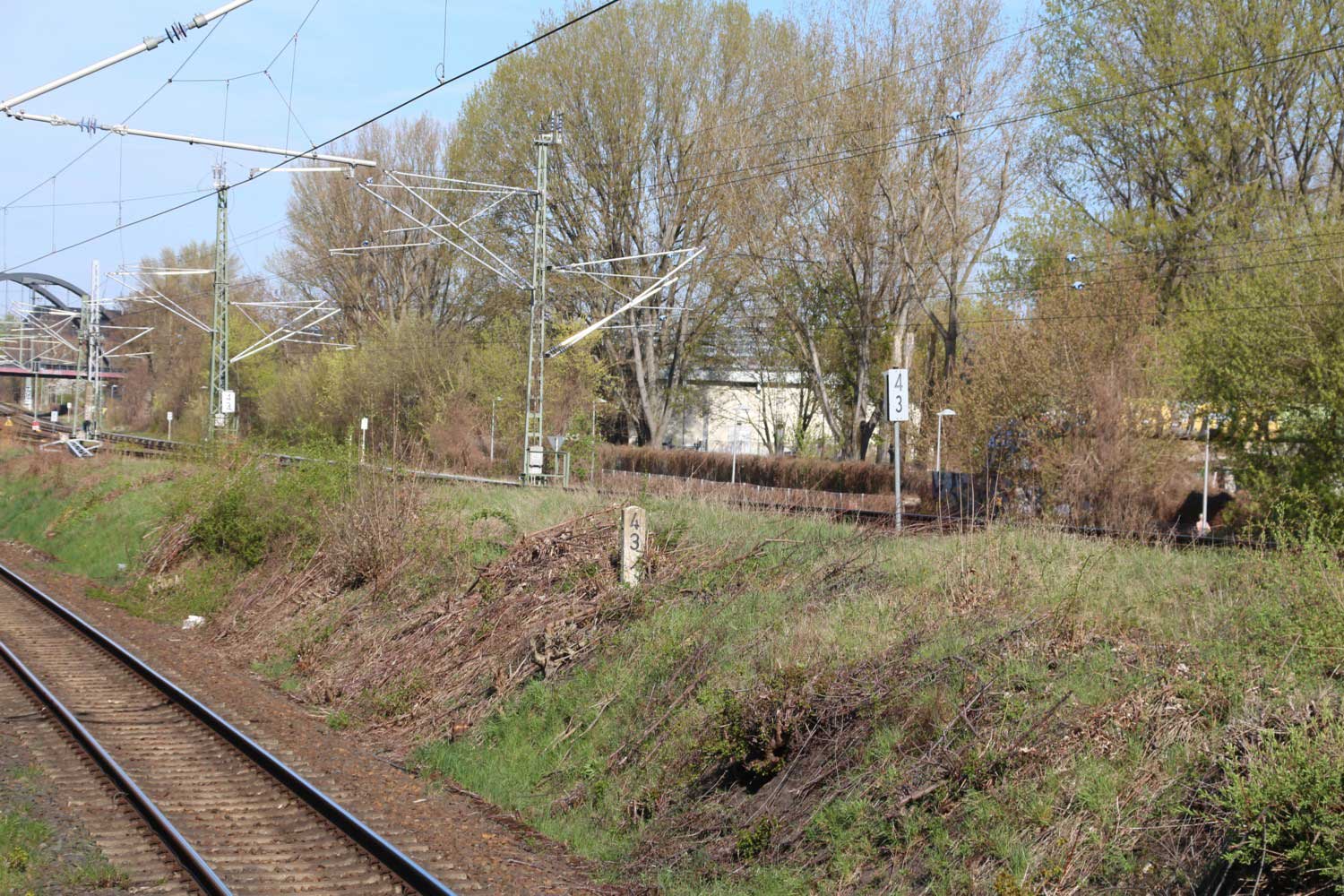 Ganz rechts im Bild ist noch das Schienenprofil der Verbindungskurve