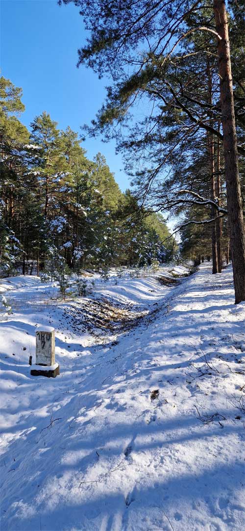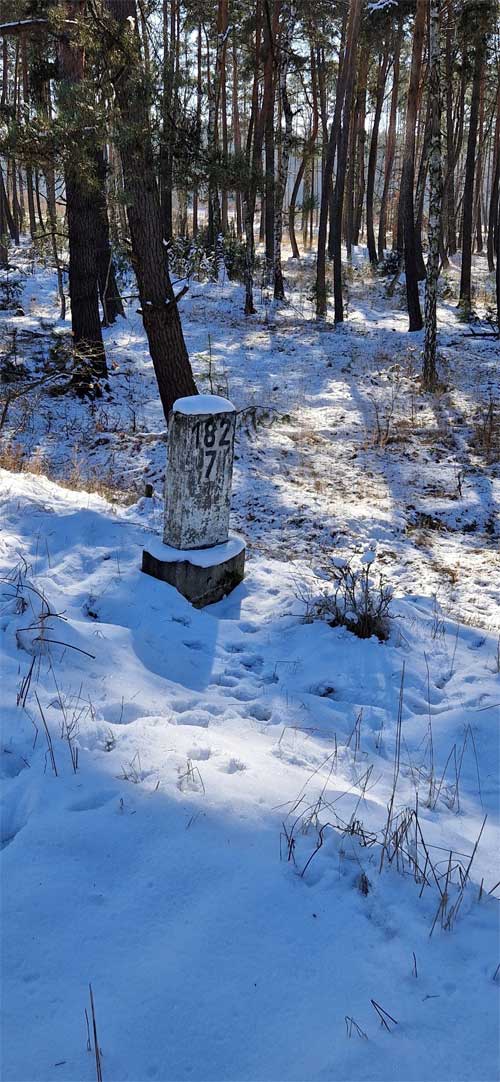 Links hinter dem Stein km 126,2 befindet sich ein weiterer Stein. Er gehört zur Strecke