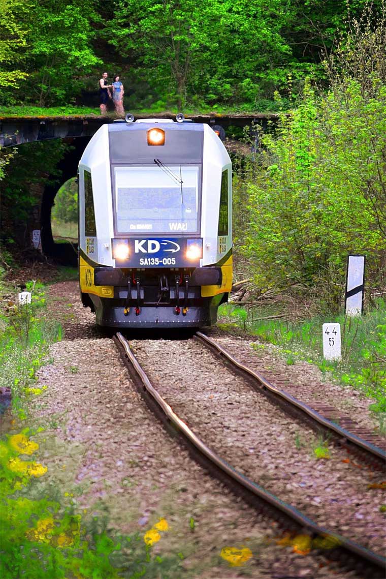 km 43,8 zwischen Jedlina-Zdrój (Bad Charlottenbrunn) und Głuszyca Górna (Ober Wüstegiersdorf)