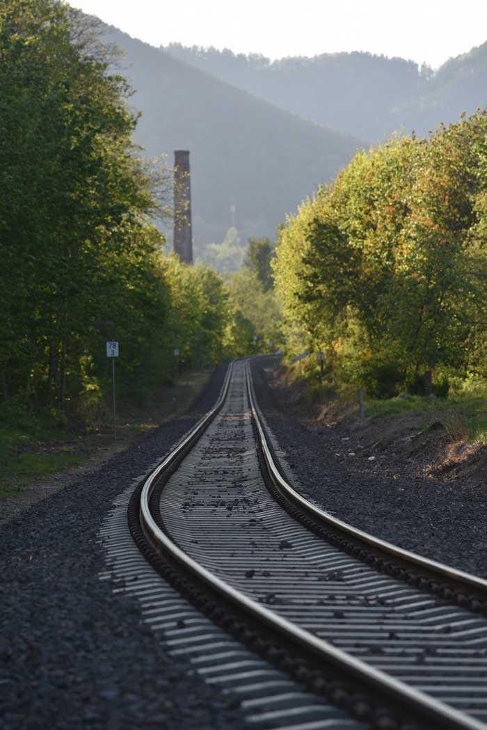 km 79,7 (Stein und Tafel) zwischen Jedlina-Zdrój Centrum und Jedlina Zdrój (Bad Charlottenbrunn) - Blick Richtung Jedlina Zdrój (Bad Charlottenbrunn)